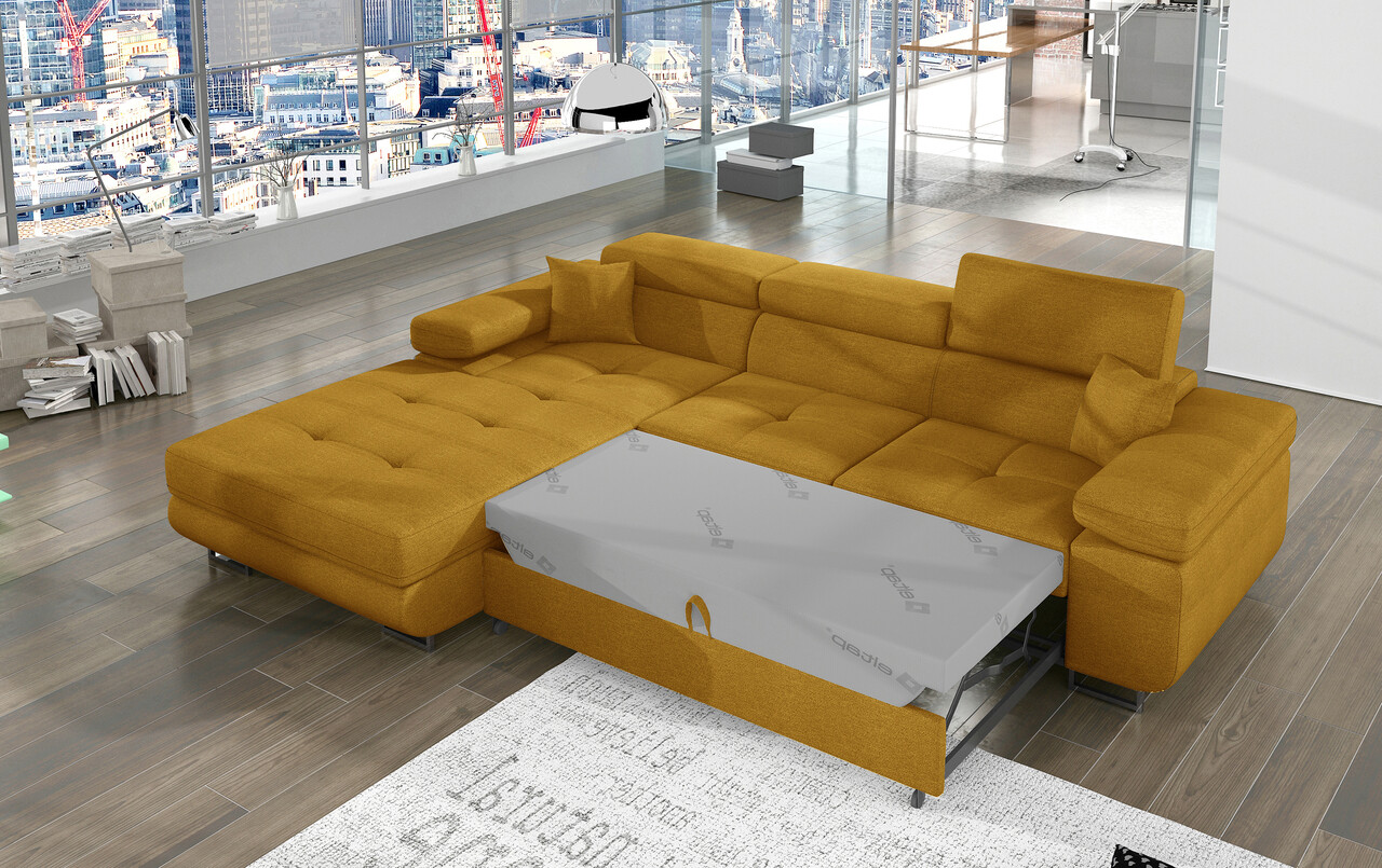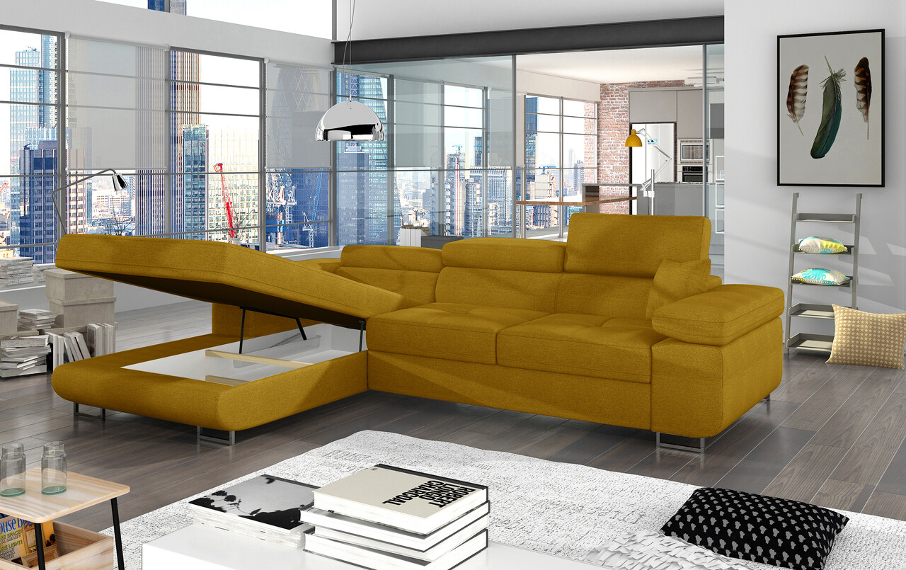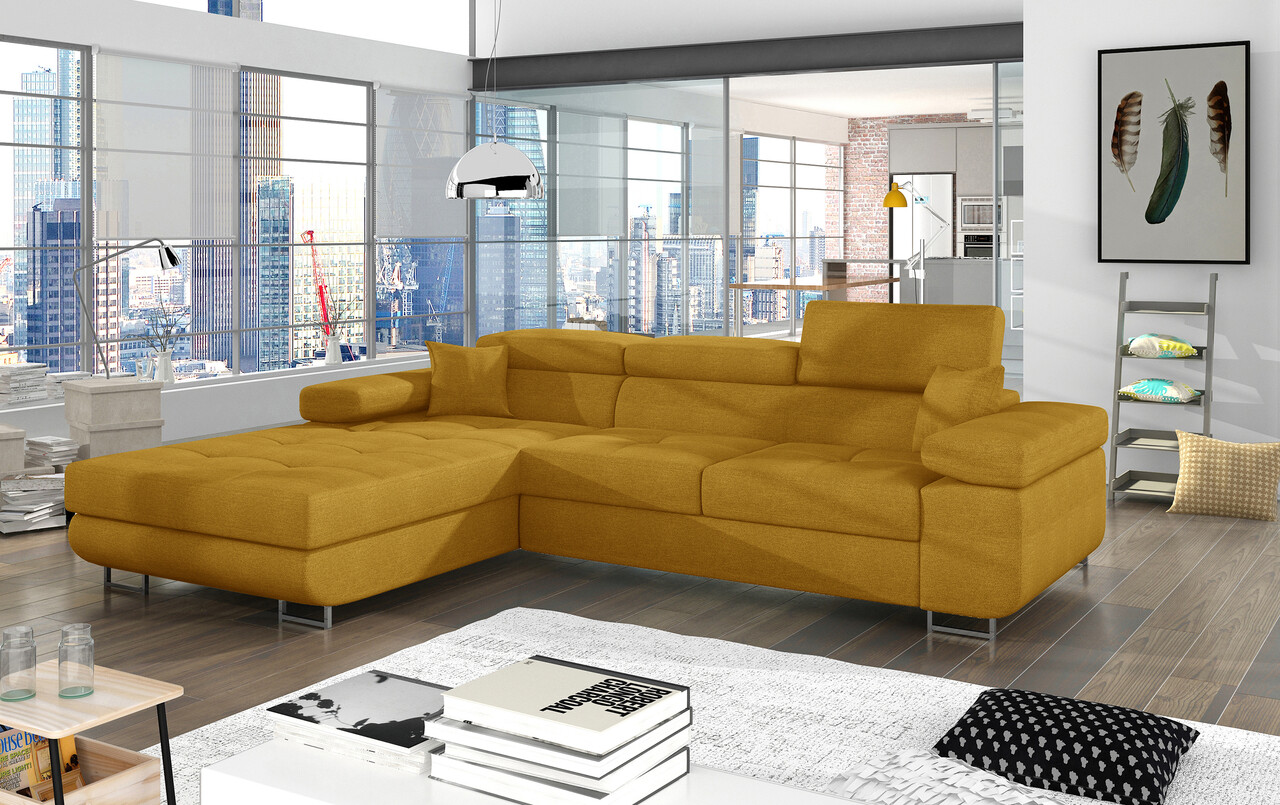 Coltar extensibil stanga 4 locuri ELTAP, Armd-74, Armando, 289x203x85 cm, lemn/poliester, galben