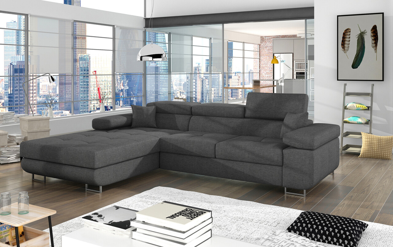 Coltar extensibil stanga 4 locuri ELTAP, Armd-81, Armando, 289x203x85 cm, lemn/poliester, gri inchis
