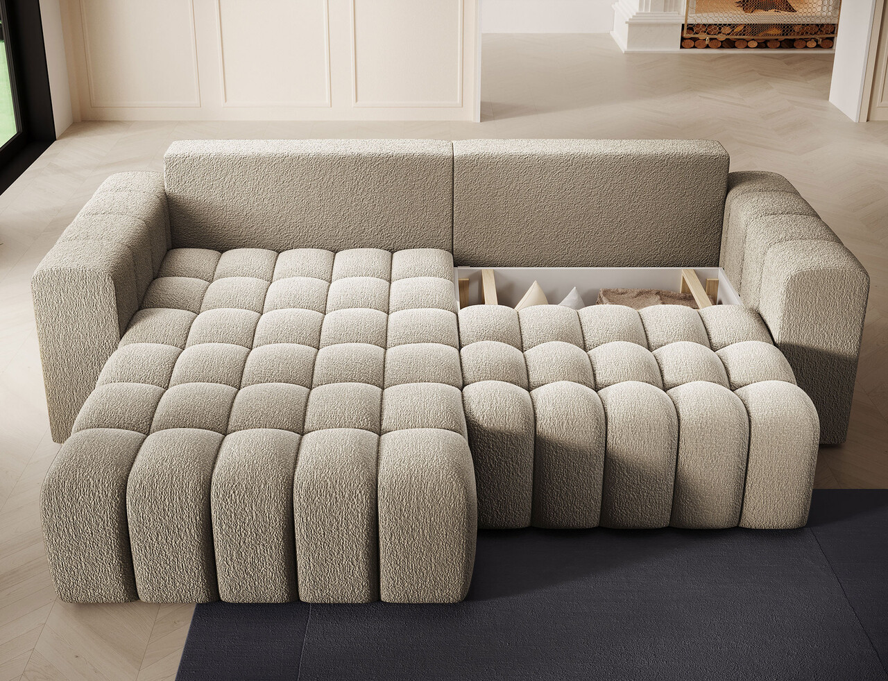 Coltar extensibil stanga 4 locuri ELTAP, Bon-227, Bonett, 250x175x92 cm, lemn/poliester, bej inchis