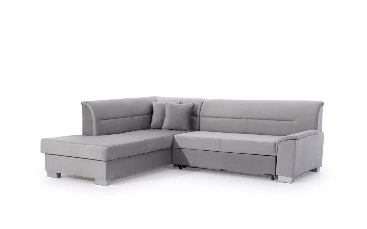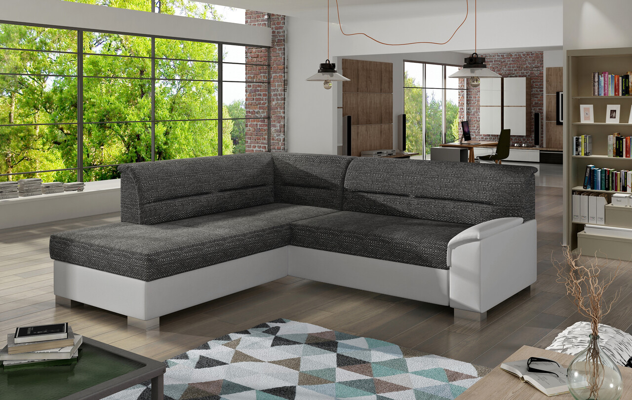 Coltar extensibil stanga 4 locuri ELTAP, BR06, Bergen, 247x214x83 cm, lemn/poliester, gri inchis/alb
