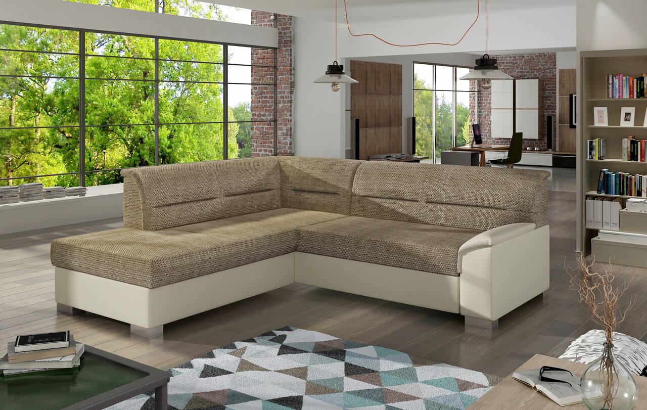 Coltar extensibil stanga 4 locuri ELTAP, BR07, Bergen, 247x214x83 cm, lemn/poliester, bej inchis/bej deschis