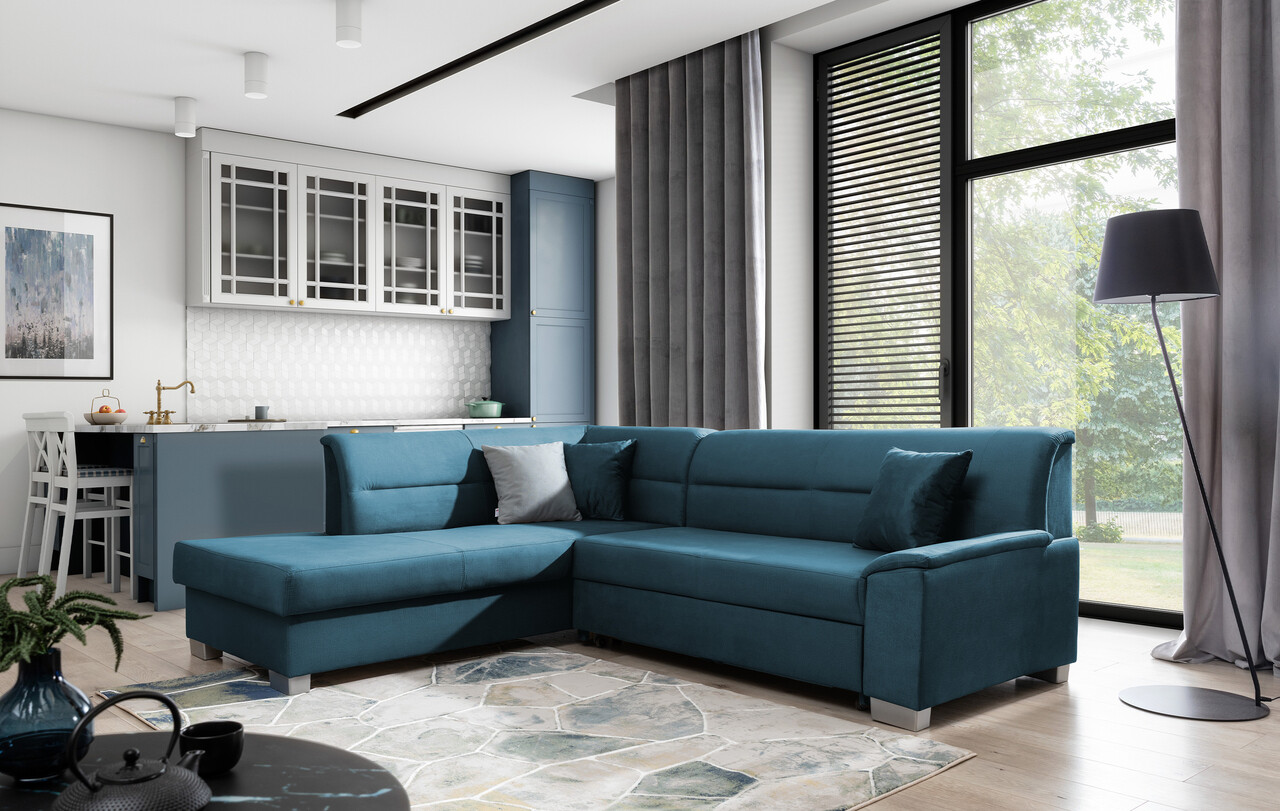 Coltar extensibil stanga 4 locuri ELTAP, BR48, Bergen, 247x214x83 cm, lemn/poliester, albastru