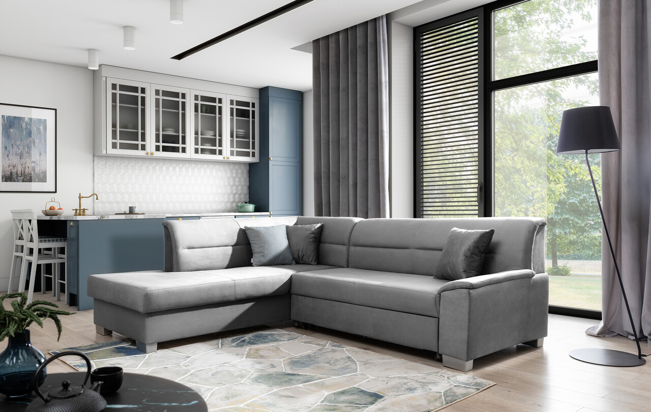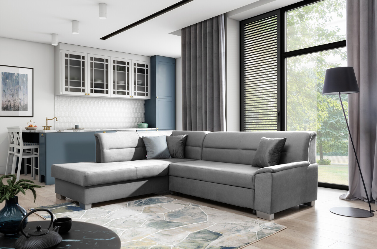 Coltar extensibil stanga 4 locuri ELTAP, BR52, Bergen, 247x214x83 cm, lemn/poliester, gri