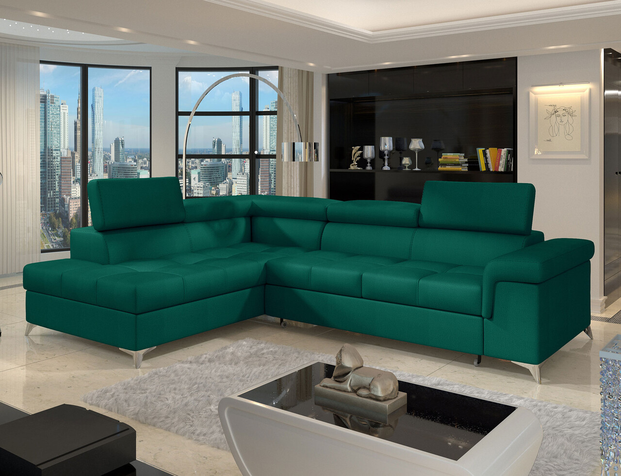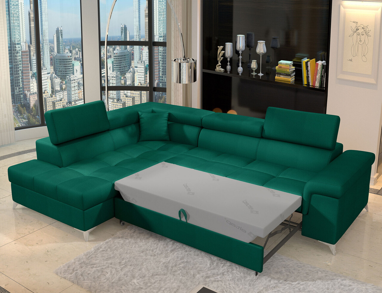 Coltar extensibil stanga 4 locuri ELTAP, ERI-36, Eridano, 275x202x88 cm, lemn/poliester, verde inchis