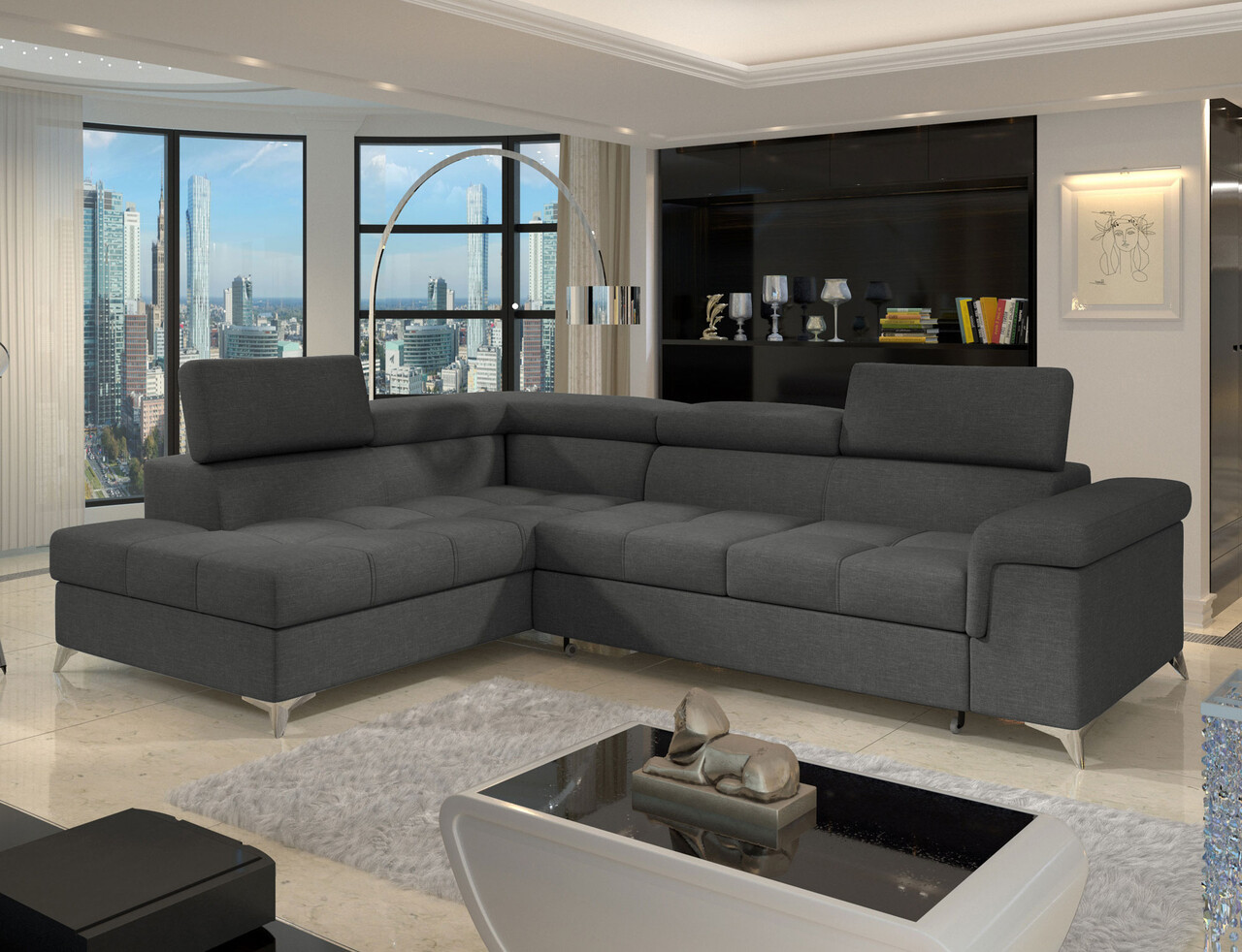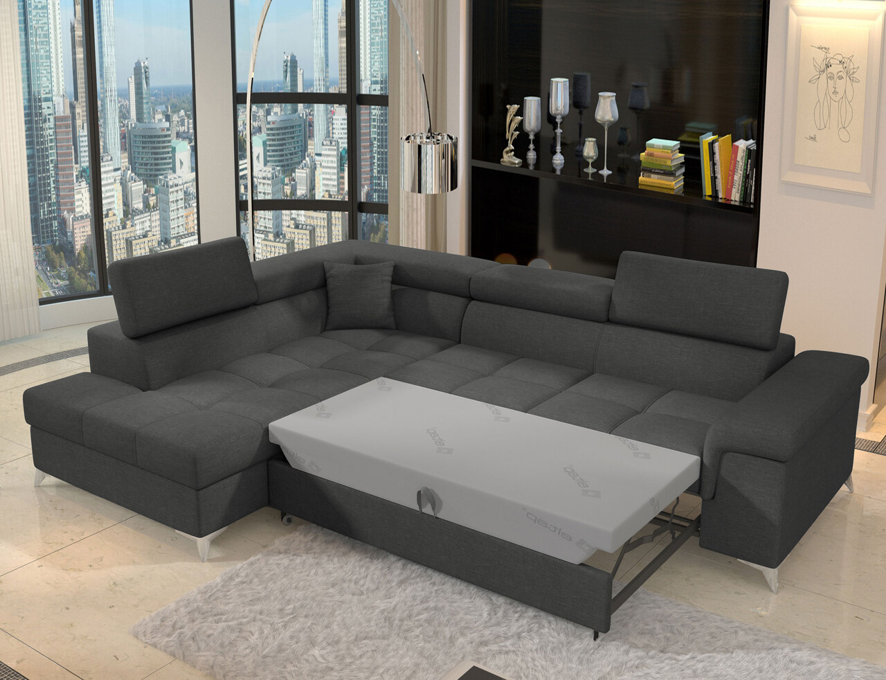 Coltar extensibil stanga 4 locuri ELTAP, ERI-41, Eridano, 275x202x88 cm, lemn/poliester, gri inchis