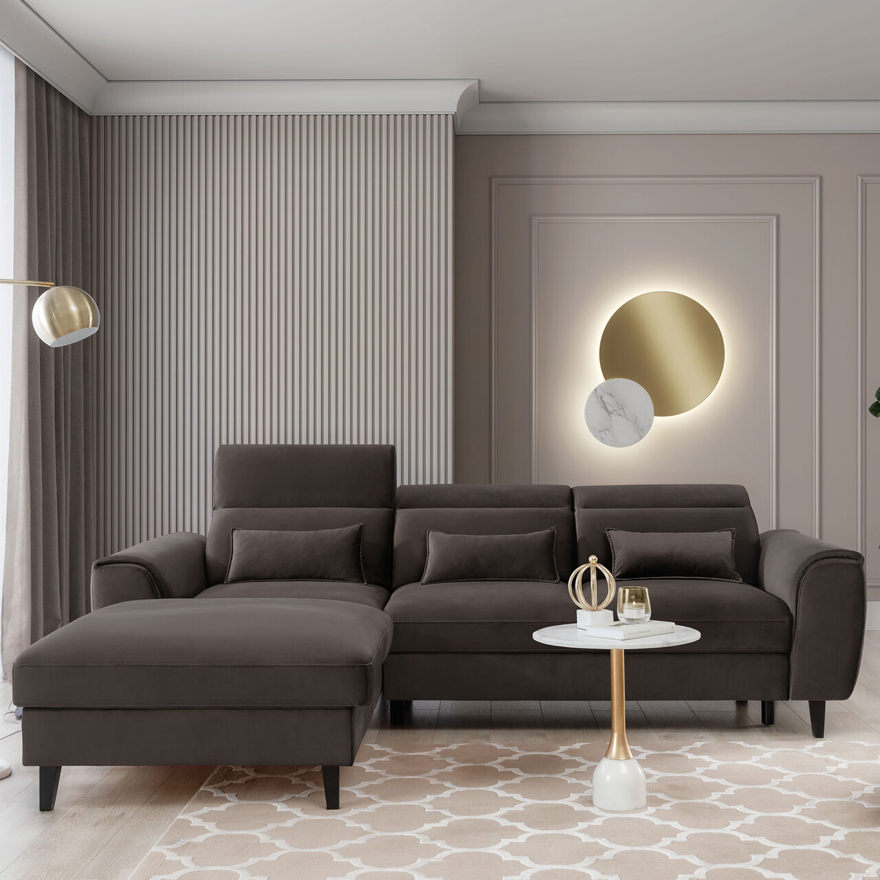 Coltar extensibil stanga 4 locuri ELTAP, Foble, 267x196x100 cm, lemn/poliester, maro inchis