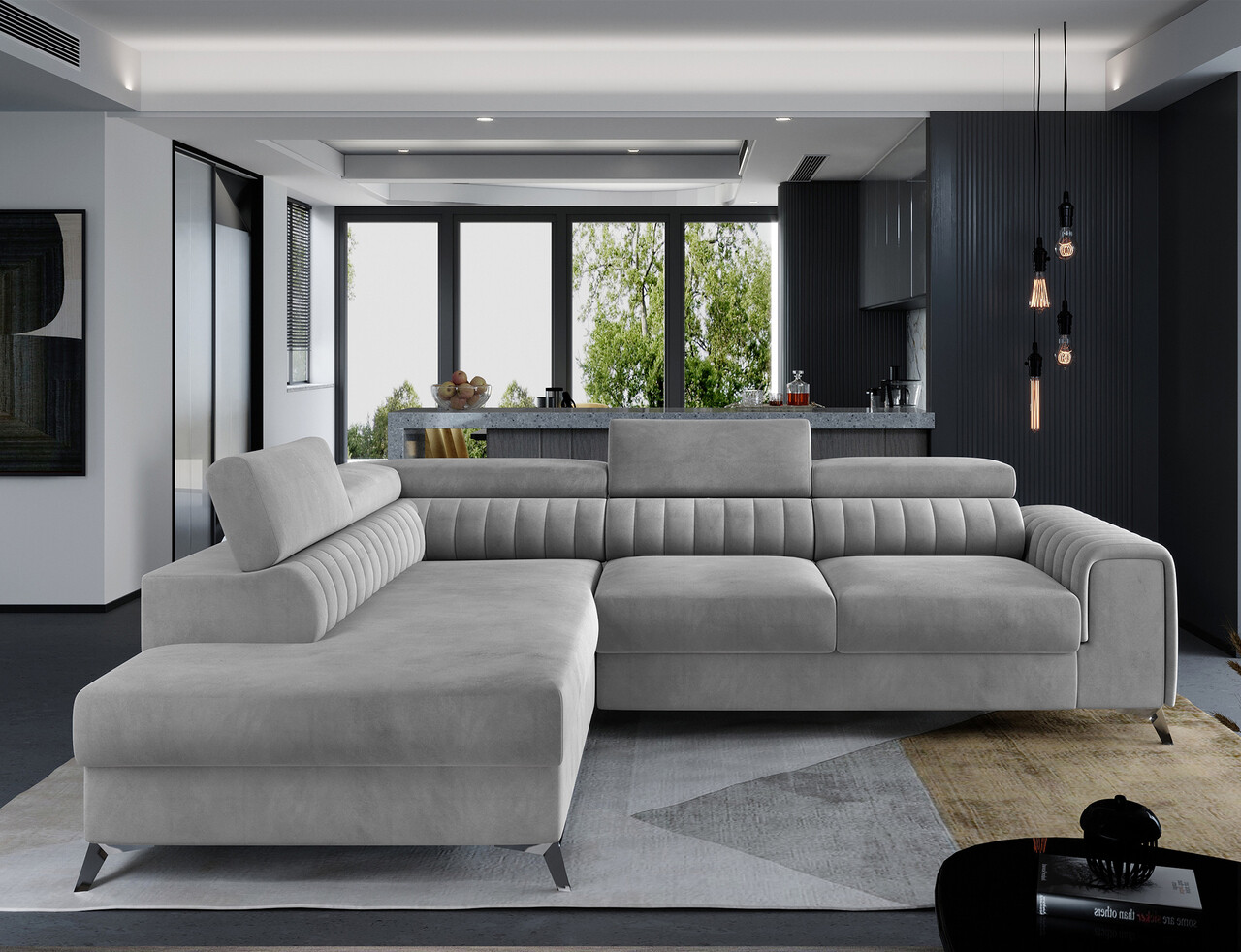 Coltar extensibil stanga 4 locuri, ELTAP, Lau-01, Laurence, 278x205x92 cm, lemn/poliester, gri deschis