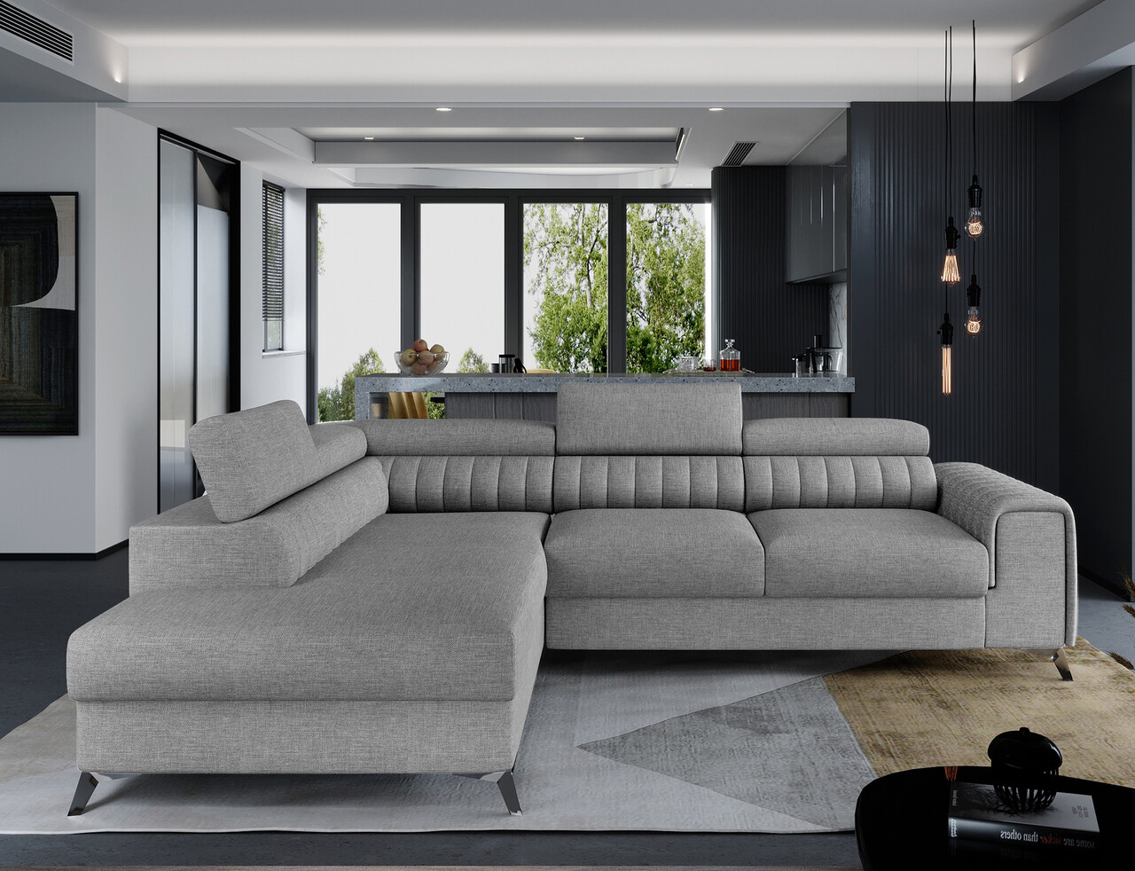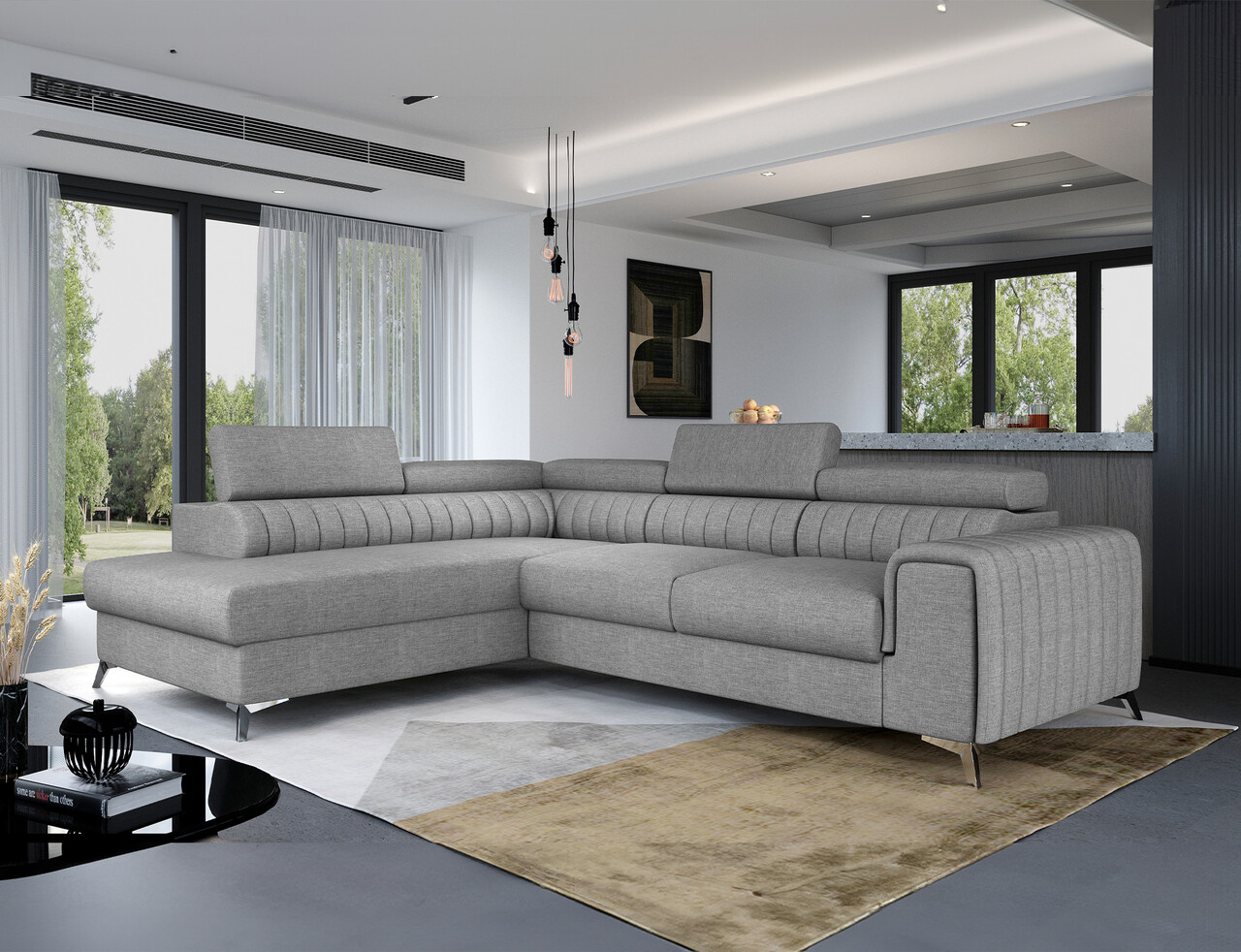Coltar extensibil stanga 4 locuri, ELTAP, Lau-20, Laurence, 278x205x92 cm, lemn/poliester, gri deschis