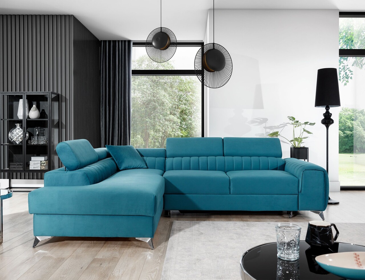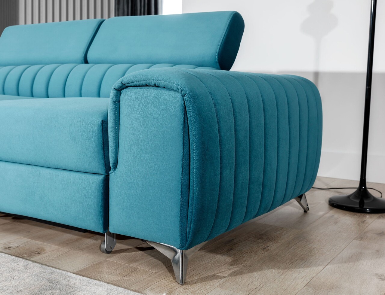 Coltar extensibil stanga 4 locuri, ELTAP, Lau-21, Laurence, 278x205x92 cm, lemn/poliester, turcoaz