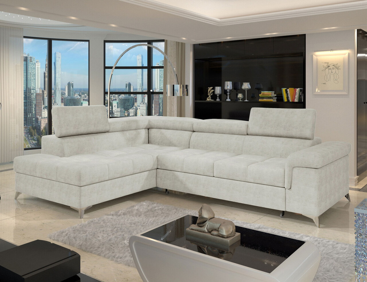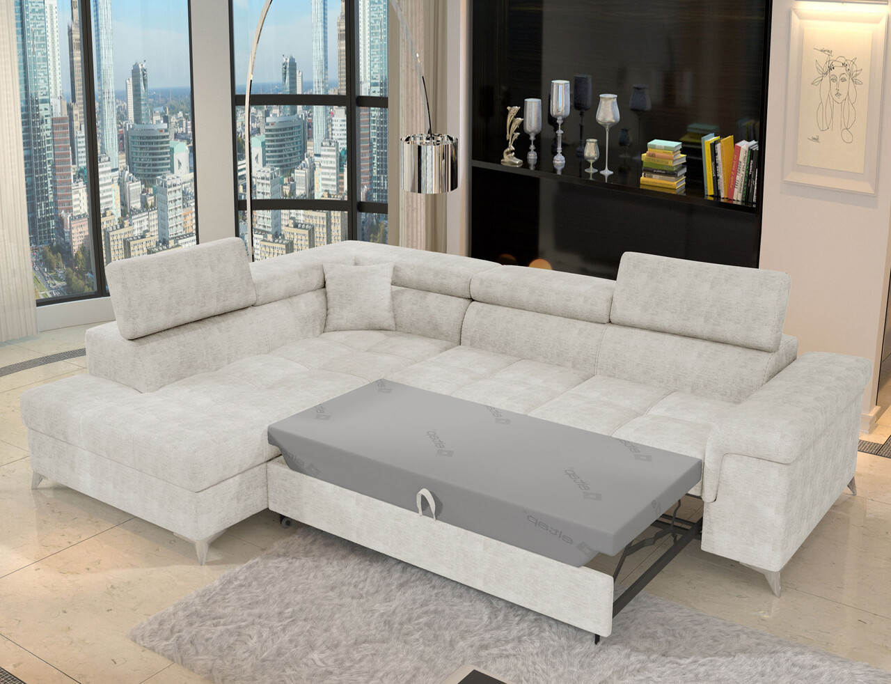 Coltar extensibil stanga 4 locuri ELTAP, LT-01AMO, Eridano, 275x202x88 cm, lemn/poliester, bej deschis