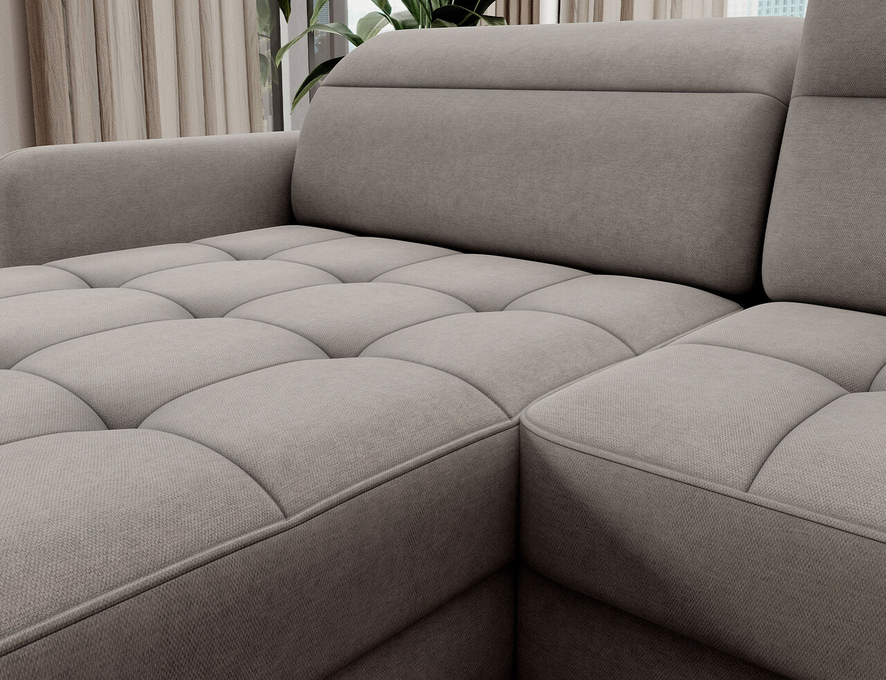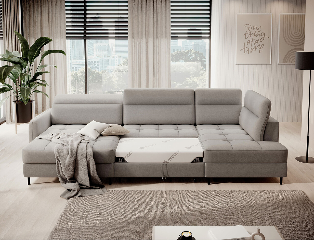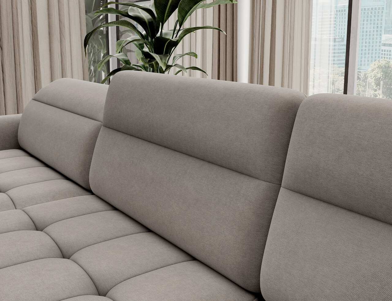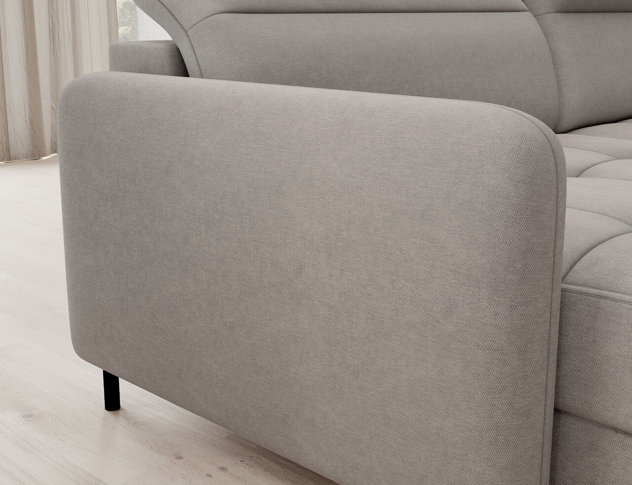 Coltar Berrto este o piesa de mobilier pentru living extrem de sofisticata, creata pentru a va oferi confort si functionalitate exceptionale. Acest coltar elegant combina designul modern cu utilizarea excelenta a componentelor de inalta calitate. Este fabricat folosind arcuri cu valuri de tip B care, impreuna cu spuma HR + T2130, extrem de elastica, creeaza o suprafata a sezutului cu un confort de neegalat. Acest lucru face sezutul moale, flexibil si se adapteaza perfect formei corpului, oferind nu numai relaxare, ci si usurare pentru muschi. Utilizarea curelelor de tapiterie si a spumei T2130 garanteaza durabilitatea si rezistenta la deformare. Nu trebuie sa va faceti griji cu privire la cutele inestetice deoarece acest coltar isi va pastra aspectul original pentru multi ani. Il puteti transforma rapid si usor intr-un pat confortabil, asigurandu-va dumneavoastra si oaspetilor dumneavoastra un somn bun. Coltarul Berrto nu inseamna doar confort, ci si fiabilitate. Durabilitatea sa este impresionanta, atingand o capacitate maxima de 390 kg. Aceasta inseamna ca va puteti bucura de el multi ani fara sa va faceti griji cu privire la durabilitatea acestuia. Coltarul Berrto se distinge nu numai prin functionalitatea sa, ci si prin finisajul sau estetic. Picioarele din otel negru ii confera o senzatie moderna, iar designul elegant il face un element minunat al decorului camerei de zi. Este echipat cu un mecanism de extindere de tip Delfin, usor de utilizat, care va permite sa il transformati rapid intr-un pat confortabil. Este solutia perfecta atunci cand aveti nevoie de un loc de dormit pentru oaspeti. Coltarul Berrto este o piesa de mobilier care imbina luxul, confortul si functionalitatea. Manopera sa de inalta calitate si finisajul atent il vor face nu numai punctul de atractie al camerei de zi, ci si un loc unde sa va relaxati si sa petreceti timp cu prietenii si familia.