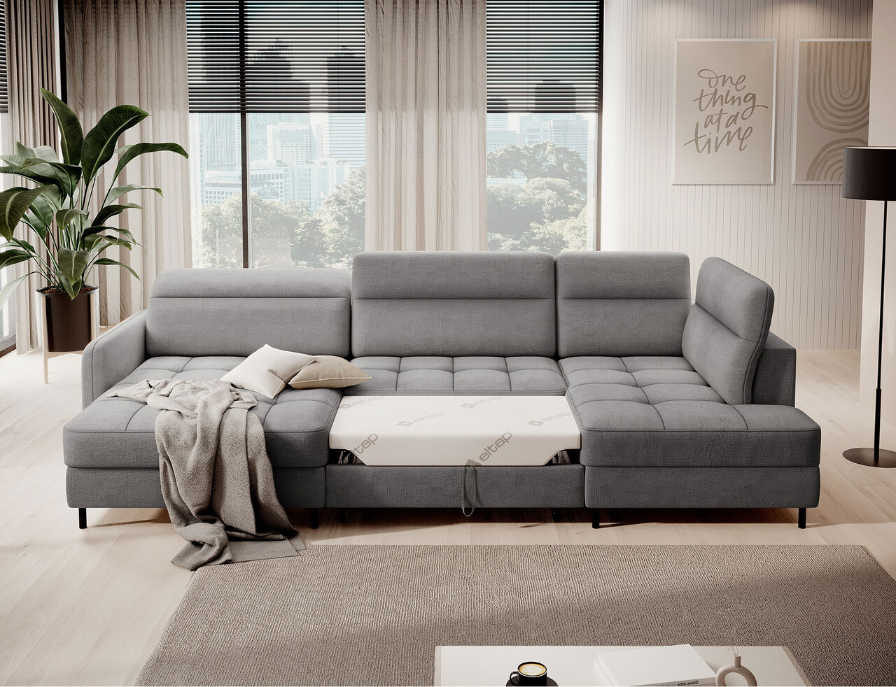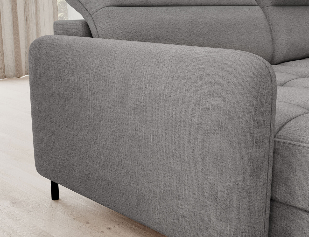 Coltar Berrto este o piesa de mobilier pentru living extrem de sofisticata, creata pentru a va oferi confort si functionalitate exceptionale. Acest coltar elegant combina designul modern cu utilizarea excelenta a componentelor de inalta calitate. Este fabricat folosind arcuri cu valuri de tip B care, impreuna cu spuma HR + T2130, extrem de elastica, creeaza o suprafata a sezutului cu un confort de neegalat. Acest lucru face sezutul moale, flexibil si se adapteaza perfect formei corpului, oferind nu numai relaxare, ci si usurare pentru muschi. Utilizarea curelelor de tapiterie si a spumei T2130 garanteaza durabilitatea si rezistenta la deformare. Nu trebuie sa va faceti griji cu privire la cutele inestetice deoarece acest coltar isi va pastra aspectul original pentru multi ani. Il puteti transforma rapid si usor intr-un pat confortabil, asigurandu-va dumneavoastra si oaspetilor dumneavoastra un somn bun. Coltarul Berrto nu inseamna doar confort, ci si fiabilitate. Durabilitatea sa este impresionanta, atingand o capacitate maxima de 390 kg. Aceasta inseamna ca va puteti bucura de el multi ani fara sa va faceti griji cu privire la durabilitatea acestuia. Coltarul Berrto se distinge nu numai prin functionalitatea sa, ci si prin finisajul sau estetic. Picioarele din otel negru ii confera o senzatie moderna, iar designul elegant il face un element minunat al decorului camerei de zi. Este echipat cu un mecanism de extindere de tip Delfin, usor de utilizat, care va permite sa il transformati rapid intr-un pat confortabil. Este solutia perfecta atunci cand aveti nevoie de un loc de dormit pentru oaspeti. Coltarul Berrto este o piesa de mobilier care imbina luxul, confortul si functionalitatea. Manopera sa de inalta calitate si finisajul atent il vor face nu numai punctul de atractie al camerei de zi, ci si un loc unde sa va relaxati si sa petreceti timp cu prietenii si familia.