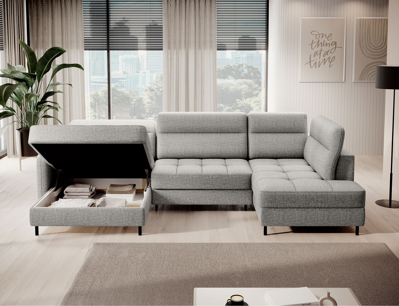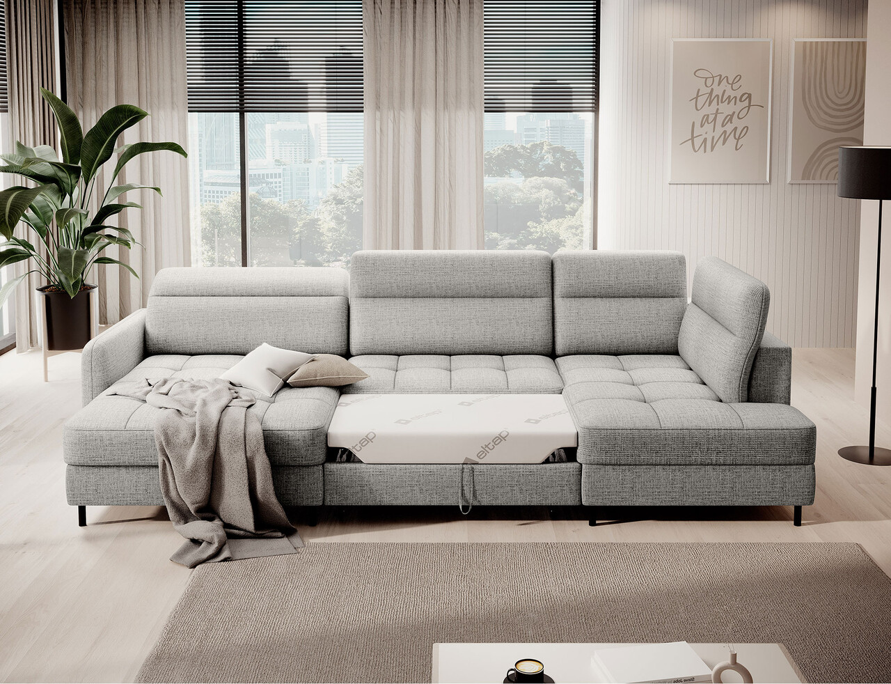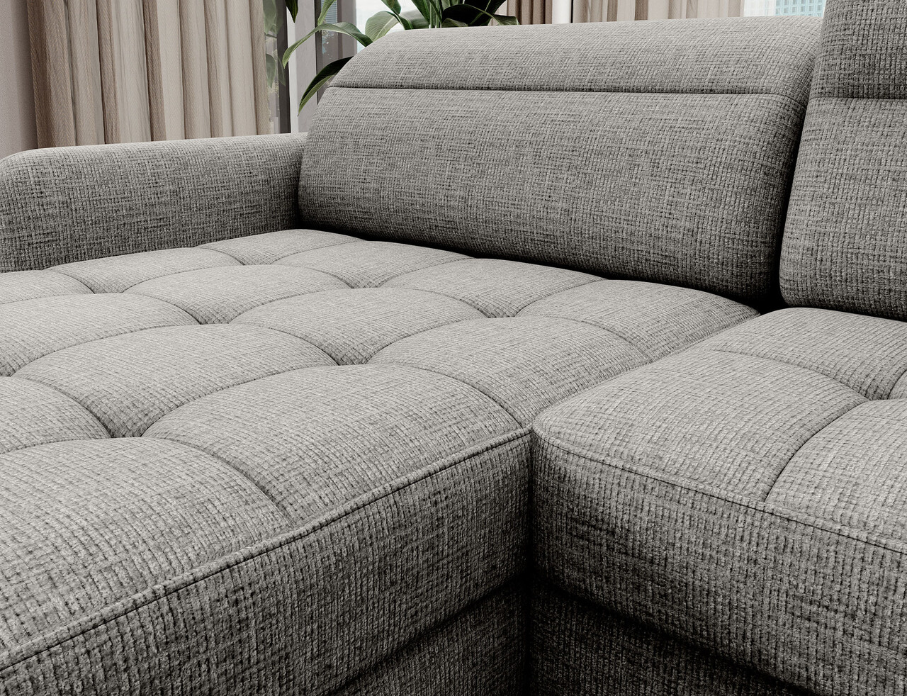 Coltar extensibil stanga 4 locuri ELTAP, LT-04AUB, Berrto, 306x165x100 cm, lemn/poliester, gri deschis