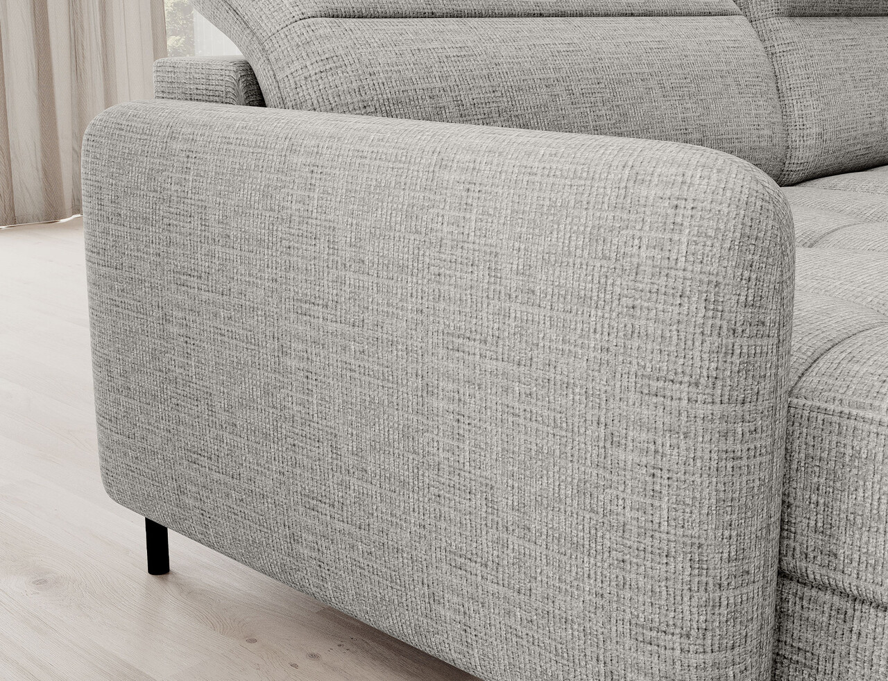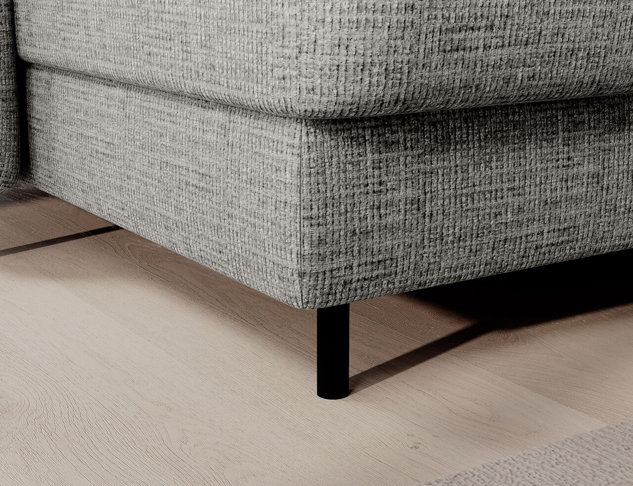 Coltar Berrto este o piesa de mobilier pentru living extrem de sofisticata, creata pentru a va oferi confort si functionalitate exceptionale. Acest coltar elegant combina designul modern cu utilizarea excelenta a componentelor de inalta calitate. Este fabricat folosind arcuri cu valuri de tip B care, impreuna cu spuma HR + T2130, extrem de elastica, creeaza o suprafata a sezutului cu un confort de neegalat. Acest lucru face sezutul moale, flexibil si se adapteaza perfect formei corpului, oferind nu numai relaxare, ci si usurare pentru muschi. Utilizarea curelelor de tapiterie si a spumei T2130 garanteaza durabilitatea si rezistenta la deformare. Nu trebuie sa va faceti griji cu privire la cutele inestetice deoarece acest coltar isi va pastra aspectul original pentru multi ani. Il puteti transforma rapid si usor intr-un pat confortabil, asigurandu-va dumneavoastra si oaspetilor dumneavoastra un somn bun. Coltarul Berrto nu inseamna doar confort, ci si fiabilitate. Durabilitatea sa este impresionanta, atingand o capacitate maxima de 390 kg. Aceasta inseamna ca va puteti bucura de el multi ani fara sa va faceti griji cu privire la durabilitatea acestuia. Coltarul Berrto se distinge nu numai prin functionalitatea sa, ci si prin finisajul sau estetic. Picioarele din otel negru ii confera o senzatie moderna, iar designul elegant il face un element minunat al decorului camerei de zi. Este echipat cu un mecanism de extindere de tip Delfin, usor de utilizat, care va permite sa il transformati rapid intr-un pat confortabil. Este solutia perfecta atunci cand aveti nevoie de un loc de dormit pentru oaspeti. Coltarul Berrto este o piesa de mobilier care imbina luxul, confortul si functionalitatea. Manopera sa de inalta calitate si finisajul atent il vor face nu numai punctul de atractie al camerei de zi, ci si un loc unde sa va relaxati si sa petreceti timp cu prietenii si familia.