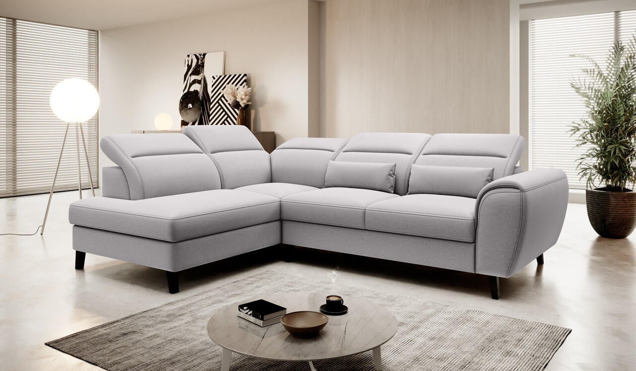 Coltar extensibil stanga 4 locuri ELTAP, LT-04GO, Noble, 255x201x100 cm, lemn/poliester, gri deschis