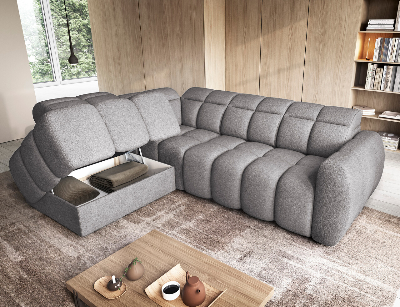 Coltar extensibil stanga 4 locuri ELTAP, LT-04PAO, Falconn, 258x208x107 cm, lemn/poliester, gri inchis