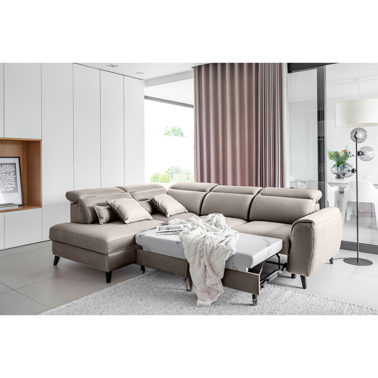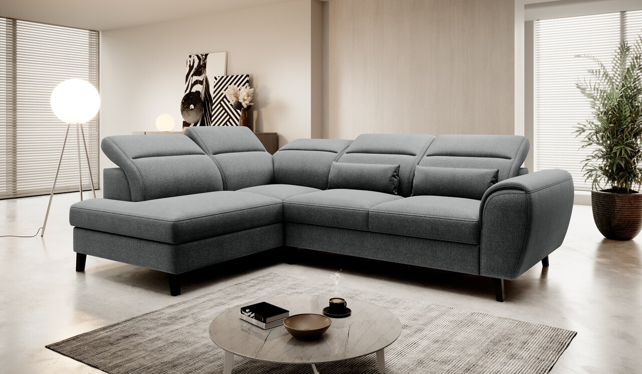 Coltar extensibil stanga 4 locuri ELTAP, LT-05VER, Noble, 255x201x100 cm, lemn/poliester, gri inchis