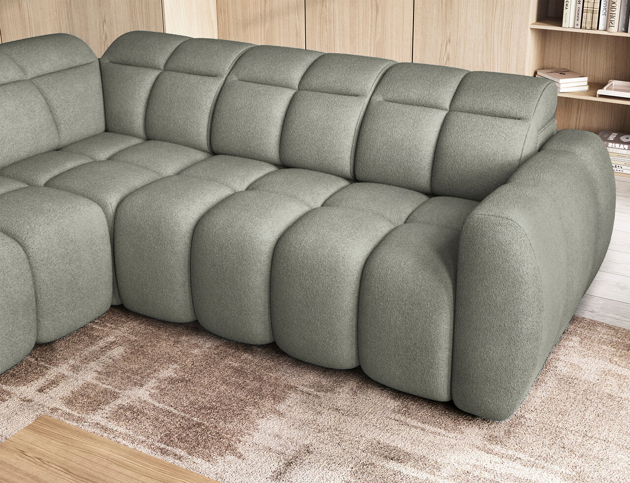 Coltar extensibil stanga 4 locuri ELTAP, LT-100XIL, Falconn, 258x208x107 cm, lemn/poliester, verde