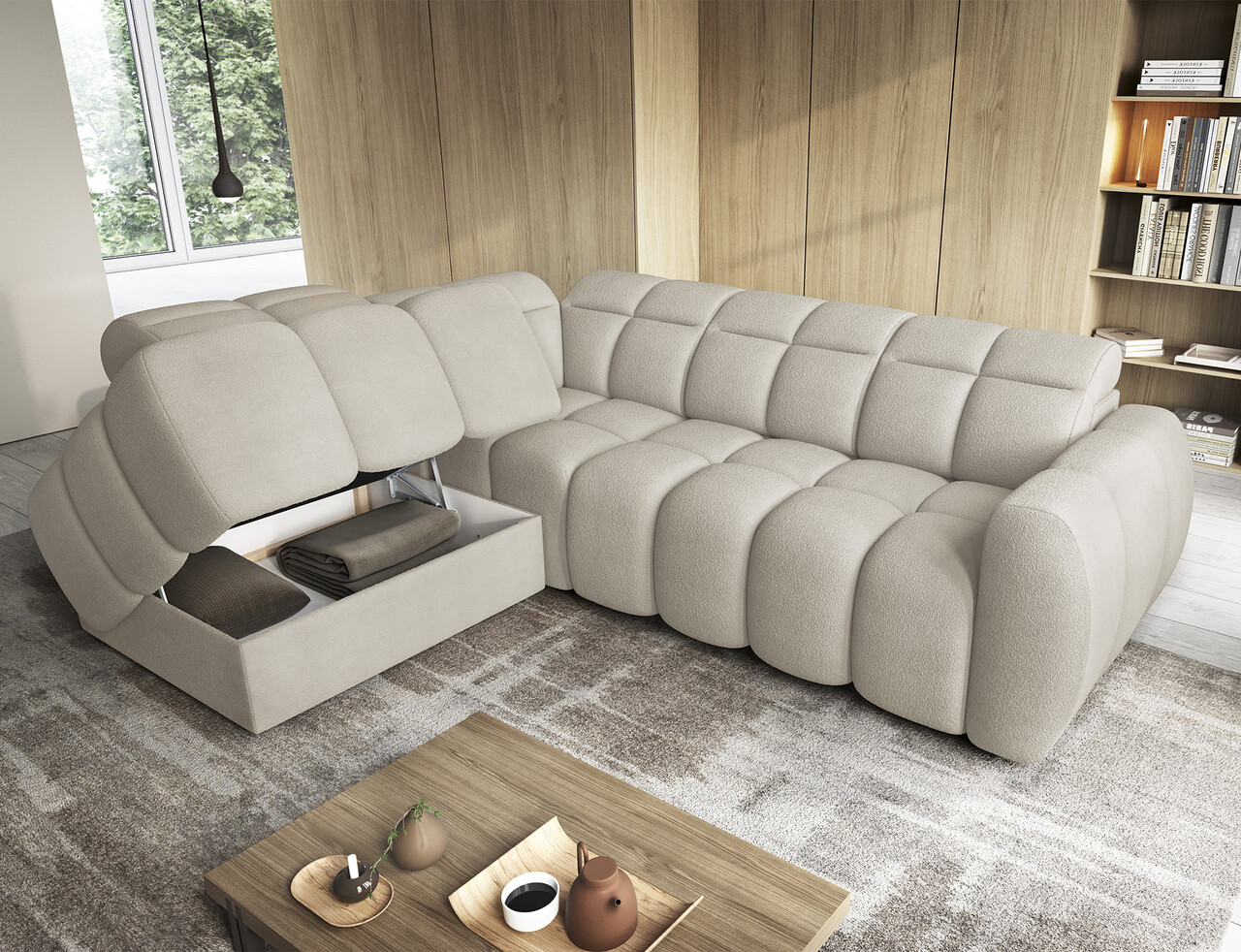 Coltar extensibil stanga 4 locuri ELTAP, LT-18ROY, Falconn, 258x208x107 cm, lemn/poliester, bej deschis