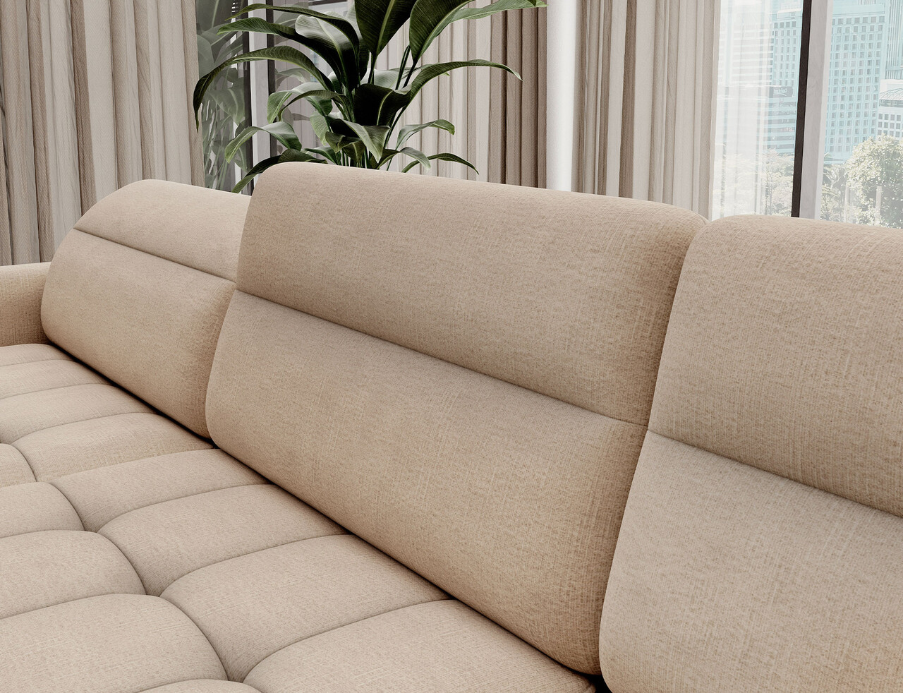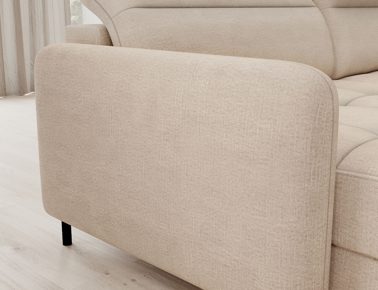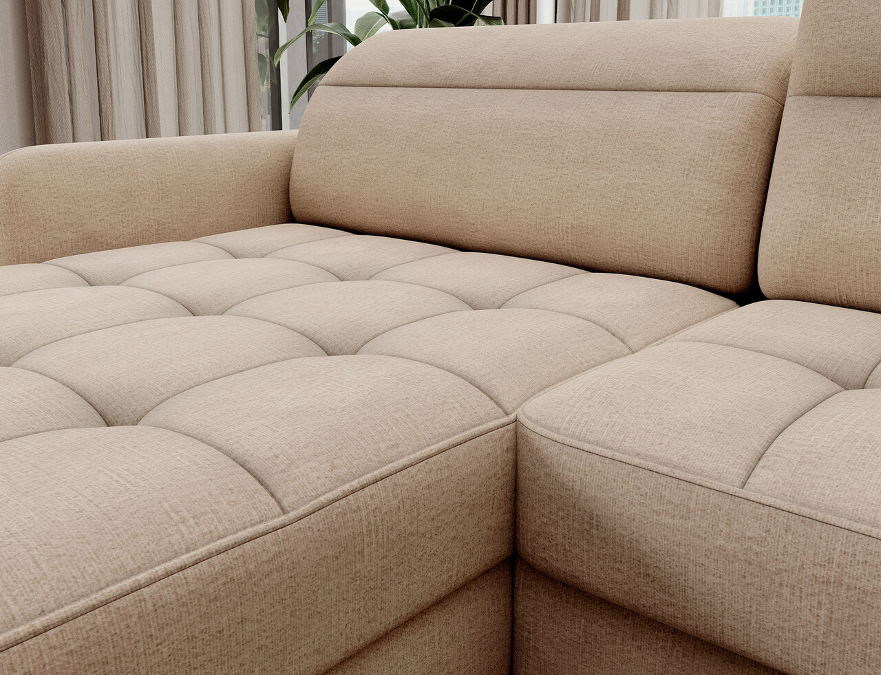 Coltar Berrto este o piesa de mobilier pentru living extrem de sofisticata, creata pentru a va oferi confort si functionalitate exceptionale. Acest coltar elegant combina designul modern cu utilizarea excelenta a componentelor de inalta calitate. Este fabricat folosind arcuri cu valuri de tip B care, impreuna cu spuma HR + T2130, extrem de elastica, creeaza o suprafata a sezutului cu un confort de neegalat. Acest lucru face sezutul moale, flexibil si se adapteaza perfect formei corpului, oferind nu numai relaxare, ci si usurare pentru muschi. Utilizarea curelelor de tapiterie si a spumei T2130 garanteaza durabilitatea si rezistenta la deformare. Nu trebuie sa va faceti griji cu privire la cutele inestetice deoarece acest coltar isi va pastra aspectul original pentru multi ani. Il puteti transforma rapid si usor intr-un pat confortabil, asigurandu-va dumneavoastra si oaspetilor dumneavoastra un somn bun. Coltarul Berrto nu inseamna doar confort, ci si fiabilitate. Durabilitatea sa este impresionanta, atingand o capacitate maxima de 390 kg. Aceasta inseamna ca va puteti bucura de el multi ani fara sa va faceti griji cu privire la durabilitatea acestuia. Coltarul Berrto se distinge nu numai prin functionalitatea sa, ci si prin finisajul sau estetic. Picioarele din otel negru ii confera o senzatie moderna, iar designul elegant il face un element minunat al decorului camerei de zi. Este echipat cu un mecanism de extindere de tip Delfin, usor de utilizat, care va permite sa il transformati rapid intr-un pat confortabil. Este solutia perfecta atunci cand aveti nevoie de un loc de dormit pentru oaspeti. Coltarul Berrto este o piesa de mobilier care imbina luxul, confortul si functionalitatea. Manopera sa de inalta calitate si finisajul atent il vor face nu numai punctul de atractie al camerei de zi, ci si un loc unde sa va relaxati si sa petreceti timp cu prietenii si familia.