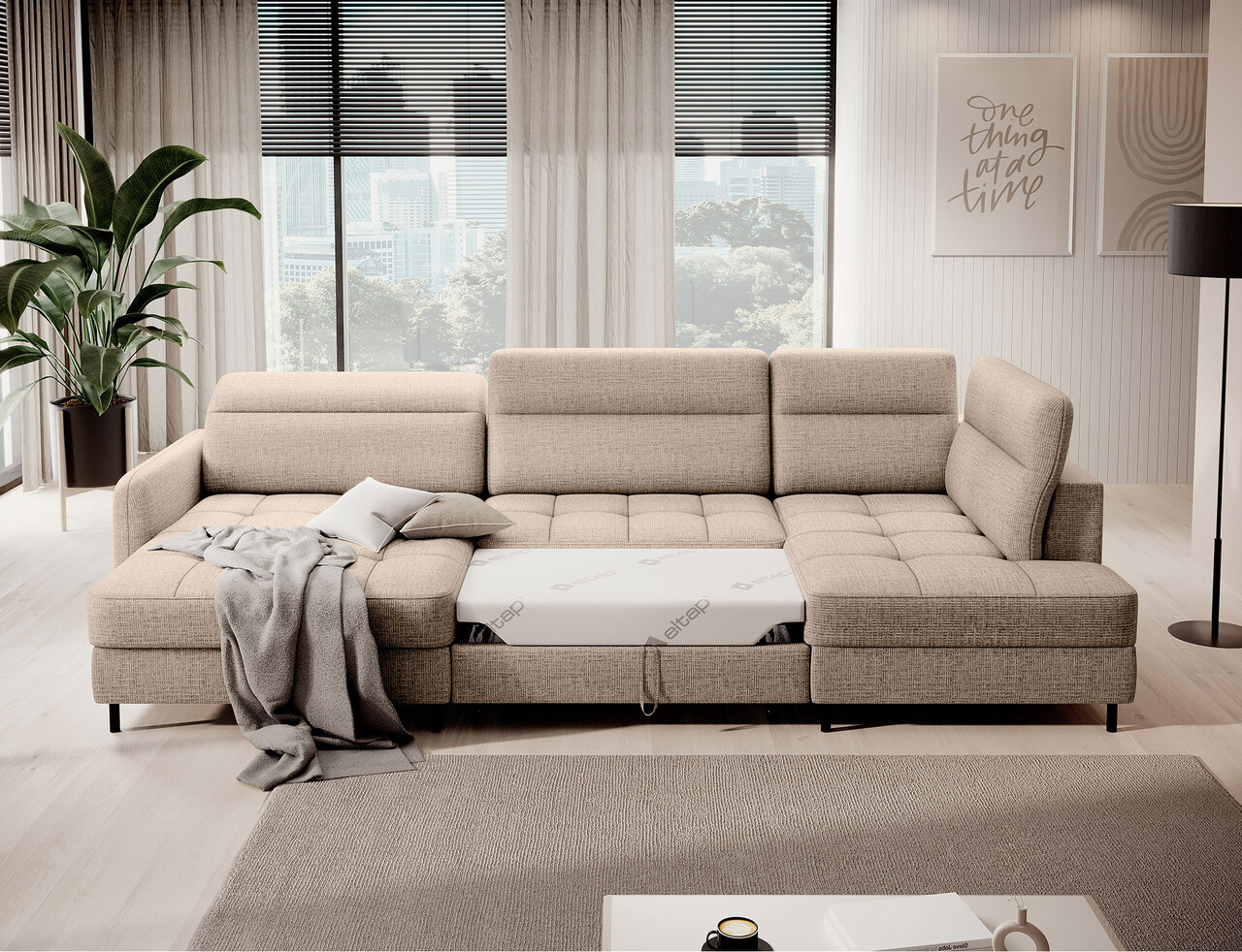 • Coltar extensibil stanga 4 locuri ELTAP, LT-20AUB, Berrto, 306x165x100 cm, lemn/poliester, bej inchis