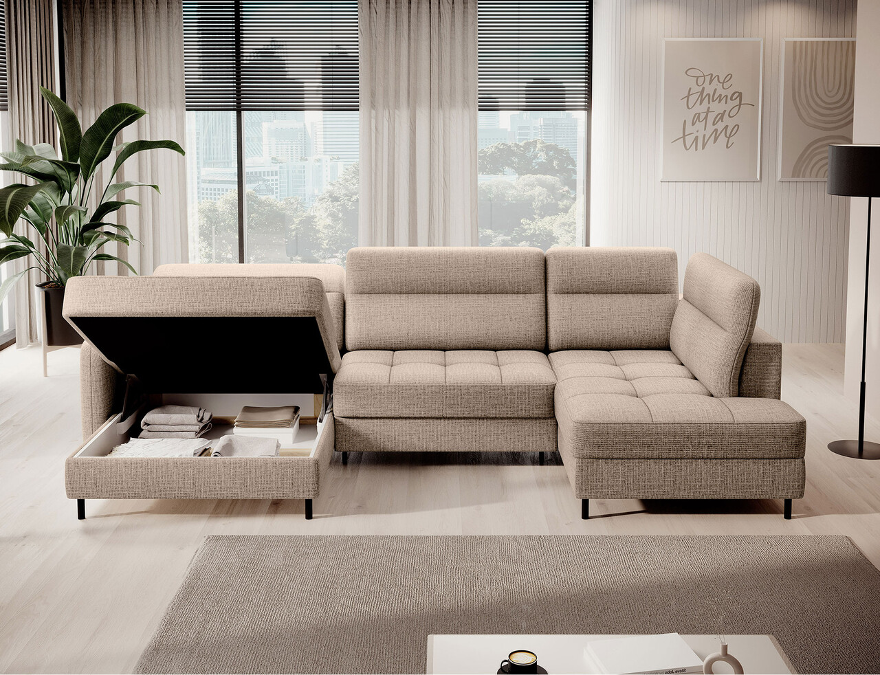Coltar extensibil stanga 4 locuri ELTAP, LT-20AUB, Berrto, 306x165x100 cm, lemn/poliester, bej inchis