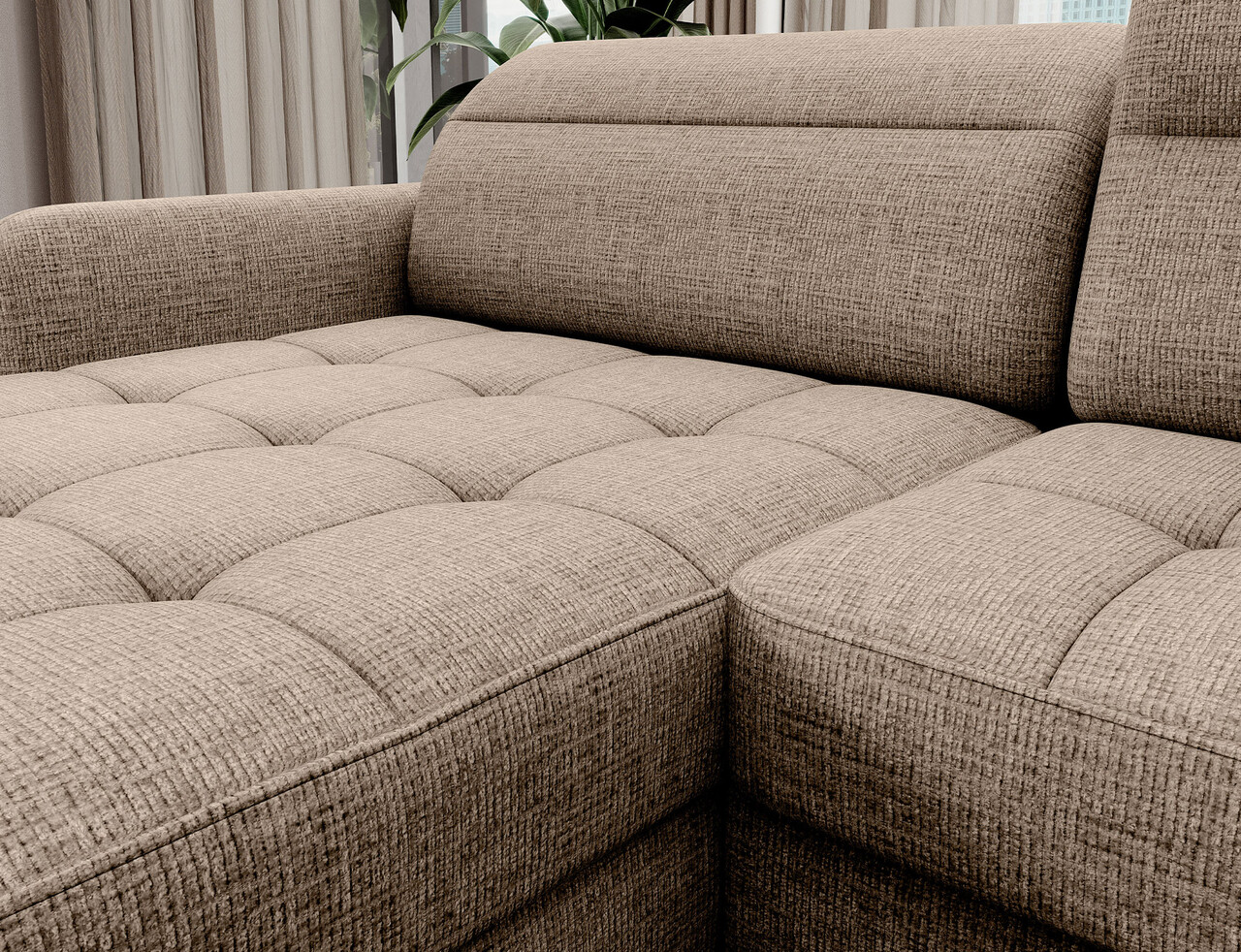 Coltar Berrto este o piesa de mobilier pentru living extrem de sofisticata, creata pentru a va oferi confort si functionalitate exceptionale. Acest coltar elegant combina designul modern cu utilizarea excelenta a componentelor de inalta calitate. Este fabricat folosind arcuri cu valuri de tip B care, impreuna cu spuma HR + T2130, extrem de elastica, creeaza o suprafata a sezutului cu un confort de neegalat. Acest lucru face sezutul moale, flexibil si se adapteaza perfect formei corpului, oferind nu numai relaxare, ci si usurare pentru muschi. Utilizarea curelelor de tapiterie si a spumei T2130 garanteaza durabilitatea si rezistenta la deformare. Nu trebuie sa va faceti griji cu privire la cutele inestetice deoarece acest coltar isi va pastra aspectul original pentru multi ani. Il puteti transforma rapid si usor intr-un pat confortabil, asigurandu-va dumneavoastra si oaspetilor dumneavoastra un somn bun. Coltarul Berrto nu inseamna doar confort, ci si fiabilitate. Durabilitatea sa este impresionanta, atingand o capacitate maxima de 390 kg. Aceasta inseamna ca va puteti bucura de el multi ani fara sa va faceti griji cu privire la durabilitatea acestuia. Coltarul Berrto se distinge nu numai prin functionalitatea sa, ci si prin finisajul sau estetic. Picioarele din otel negru ii confera o senzatie moderna, iar designul elegant il face un element minunat al decorului camerei de zi. Este echipat cu un mecanism de extindere de tip Delfin, usor de utilizat, care va permite sa il transformati rapid intr-un pat confortabil. Este solutia perfecta atunci cand aveti nevoie de un loc de dormit pentru oaspeti. Coltarul Berrto este o piesa de mobilier care imbina luxul, confortul si functionalitatea. Manopera sa de inalta calitate si finisajul atent il vor face nu numai punctul de atractie al camerei de zi, ci si un loc unde sa va relaxati si sa petreceti timp cu prietenii si familia.