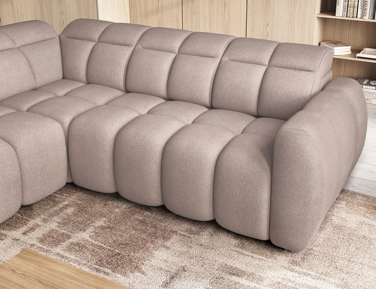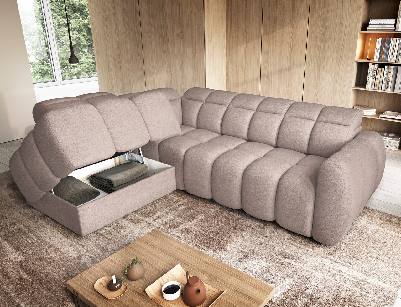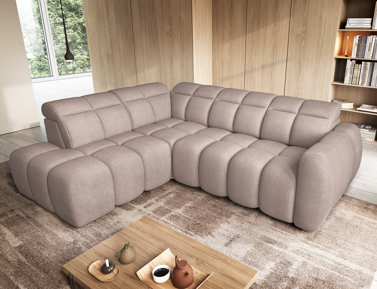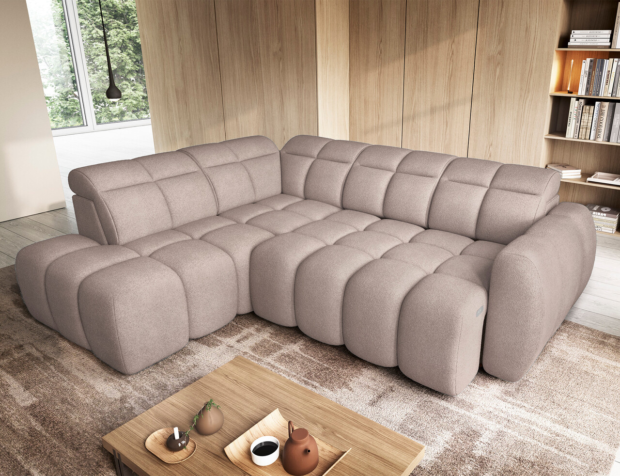 Coltar extensibil stanga 4 locuri ELTAP, LT-20XIL, Falconn, 258x208x107 cm, lemn/poliester, maro deschis