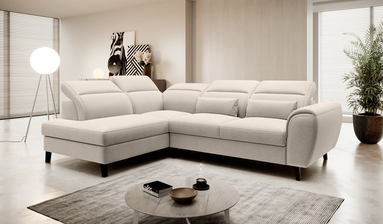 Coltar extensibil stanga 4 locuri ELTAP, LT-22IN, Noble, 255x201x100 cm, lemn/poliester, bej deschis