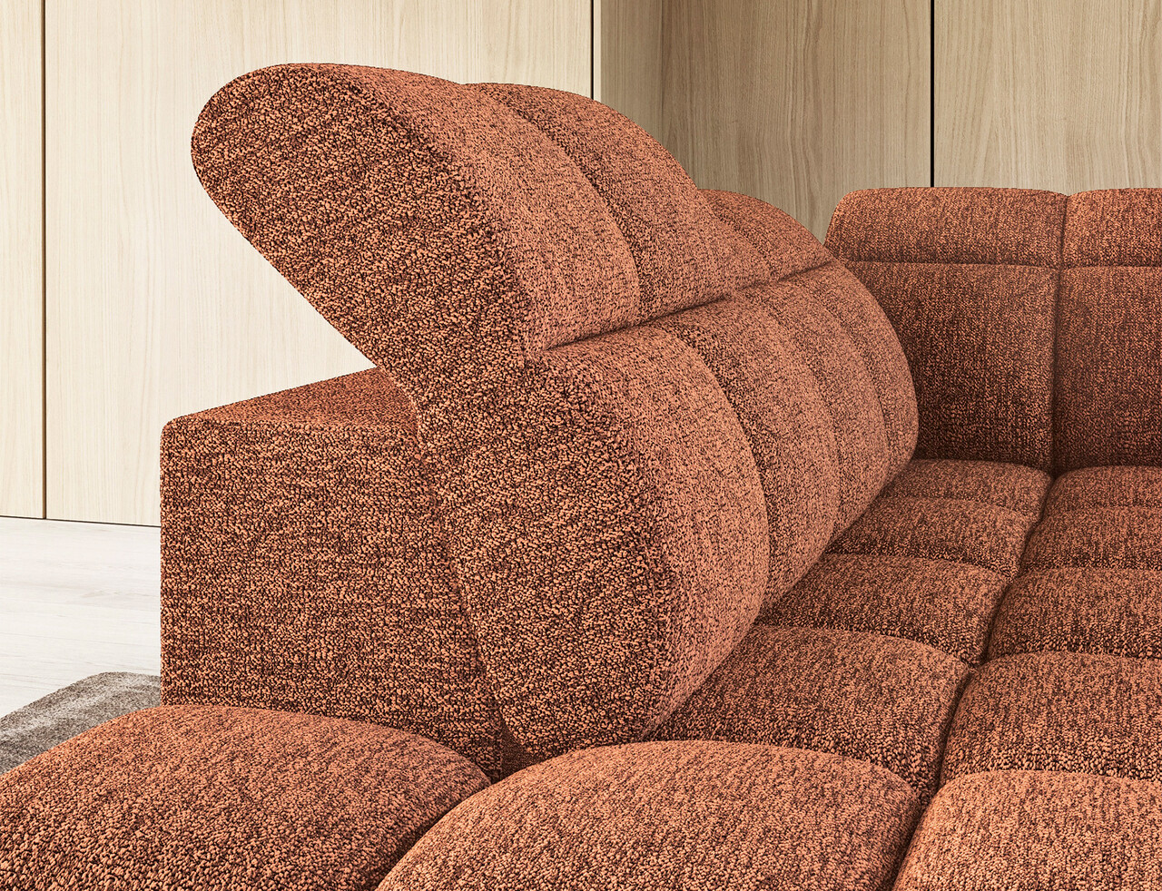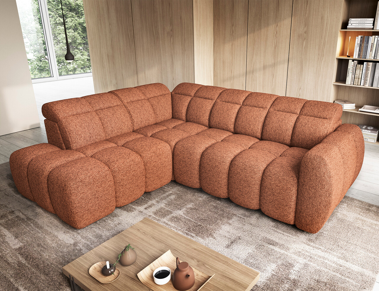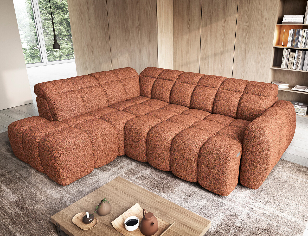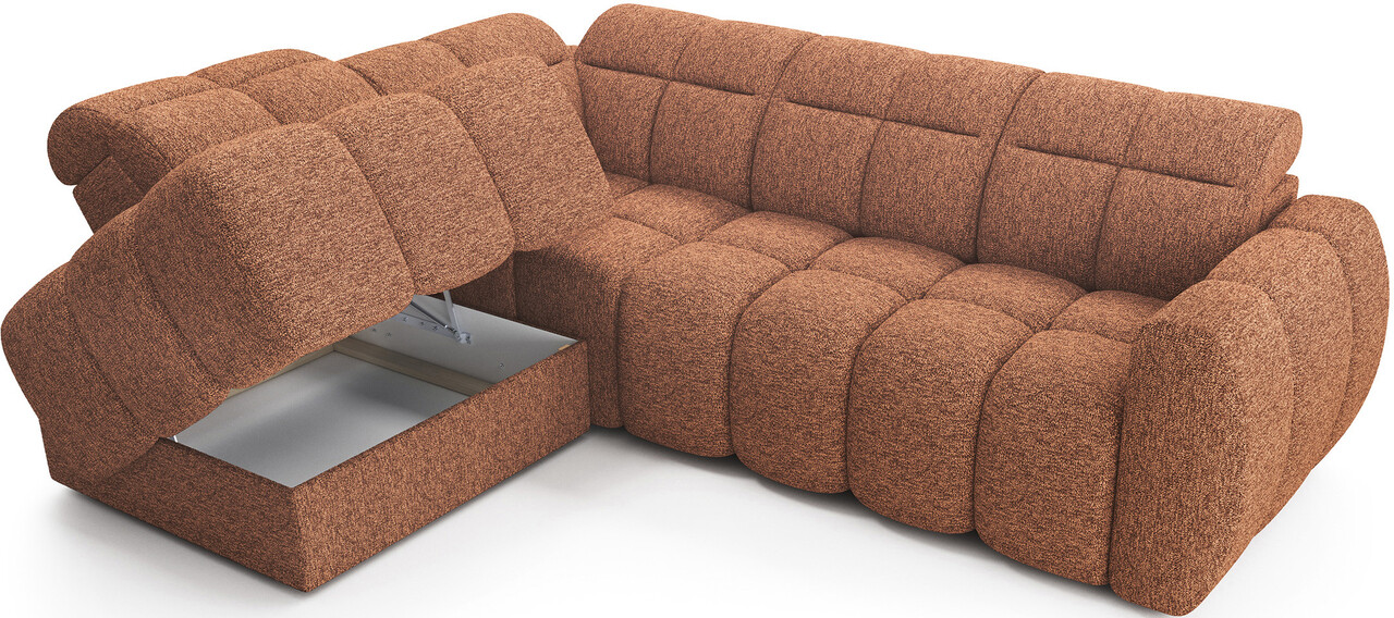 Coltar extensibil stanga 4 locuri ELTAP, LT-30COR, Falconn, 258x208x107 cm, lemn/poliester, caramiziu
