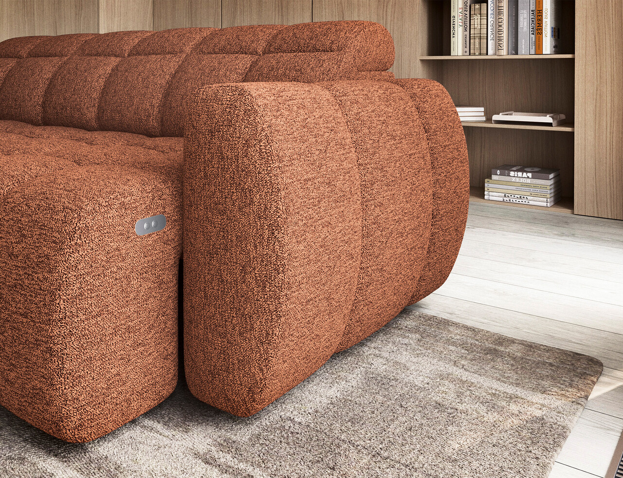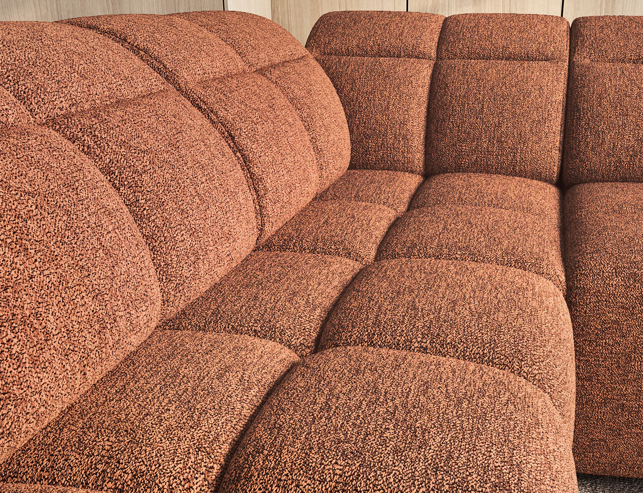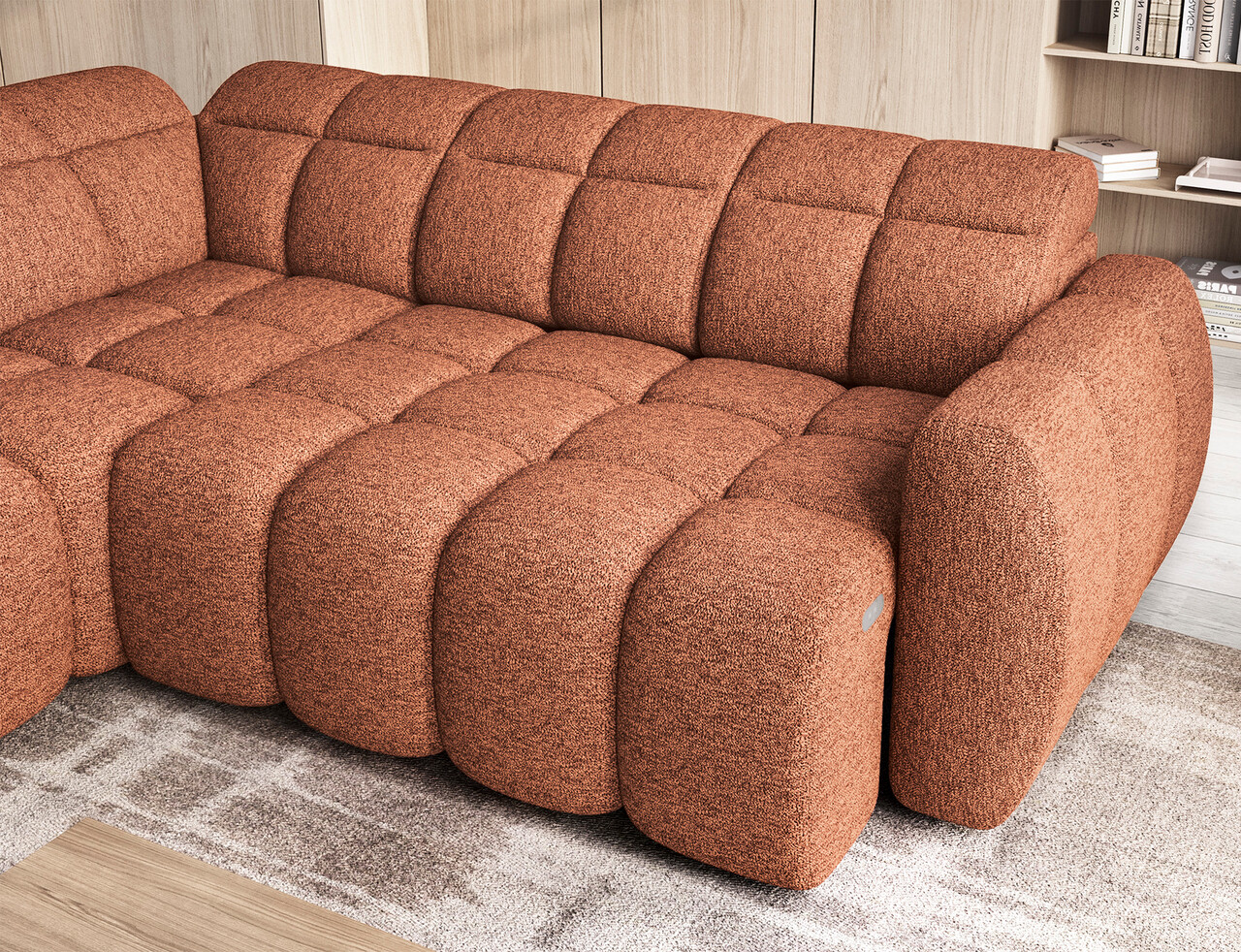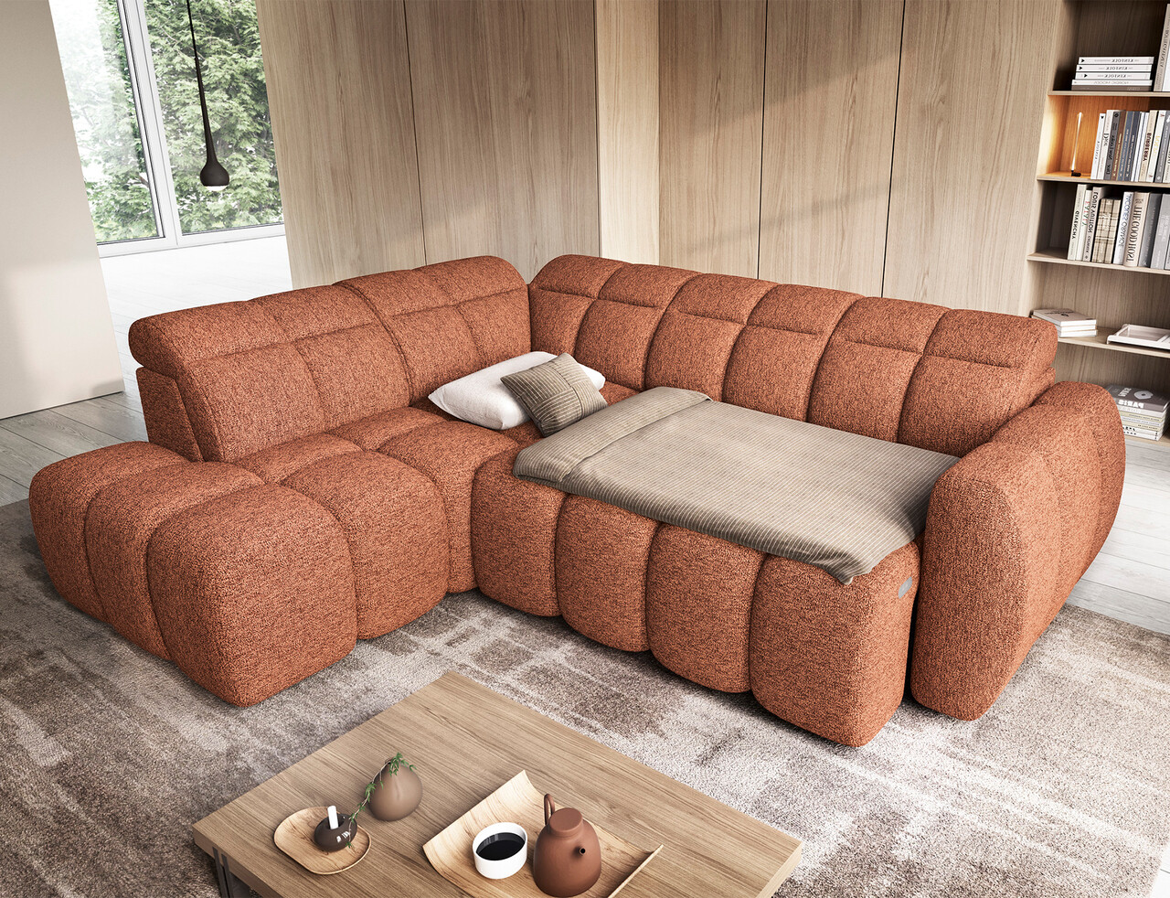 Coltar extensibil stanga 4 locuri ELTAP, LT-30COR, Falconn, 258x208x107 cm, lemn/poliester, caramiziu