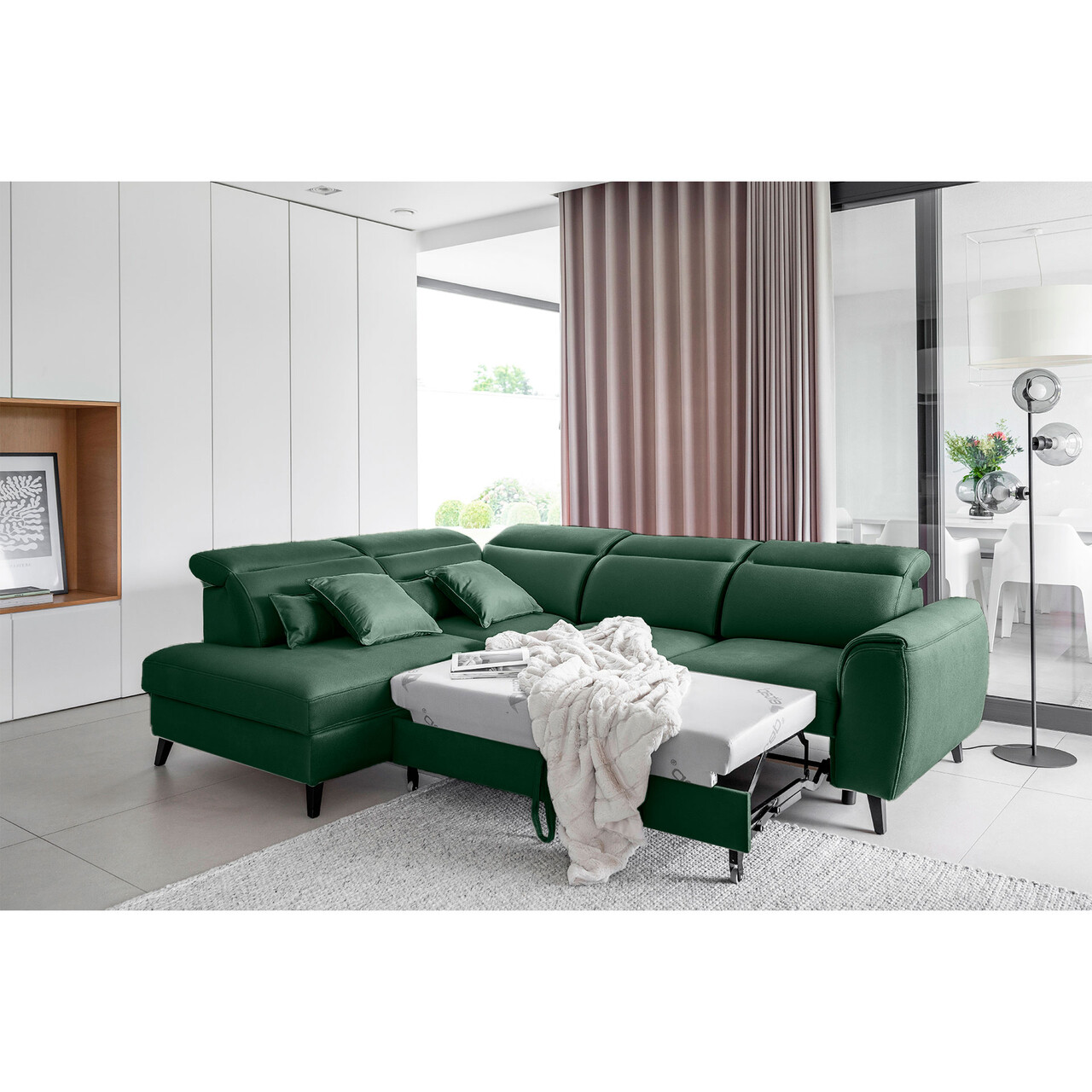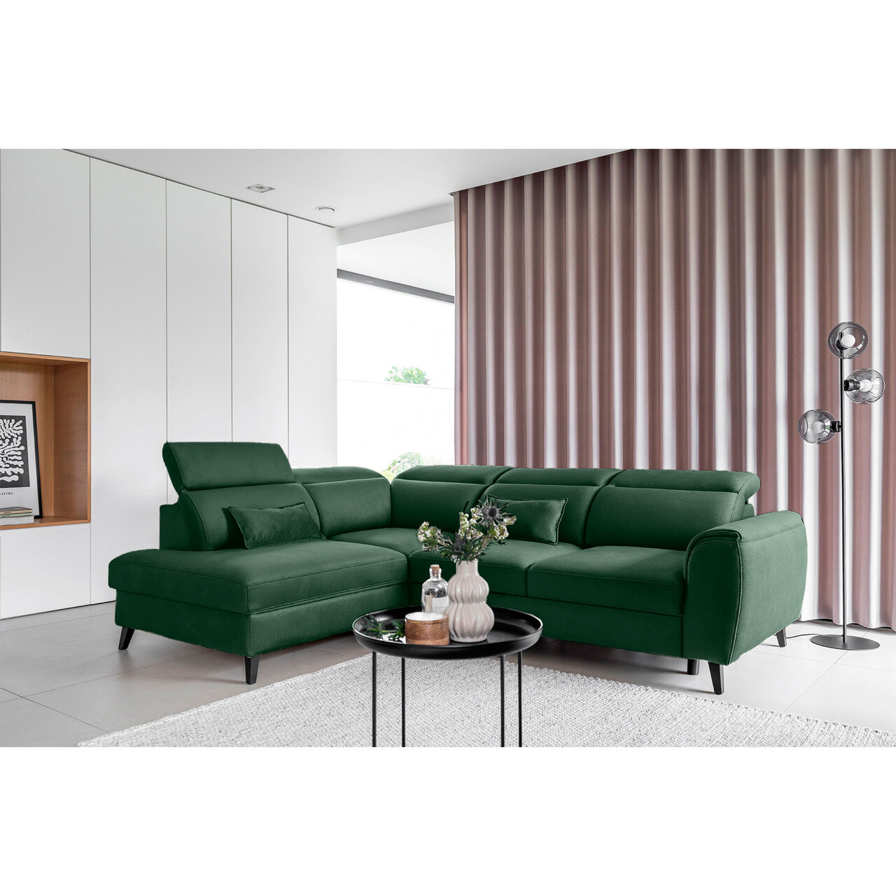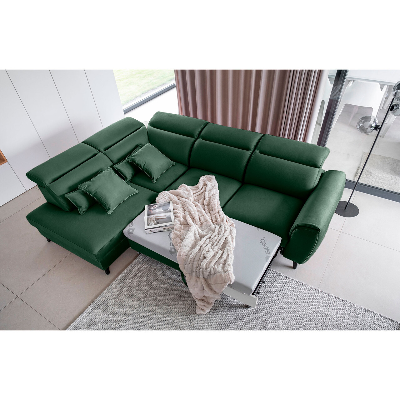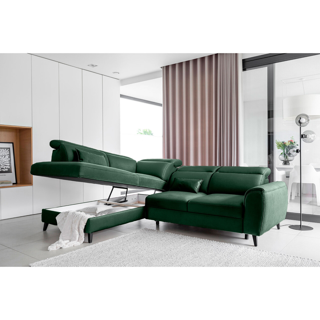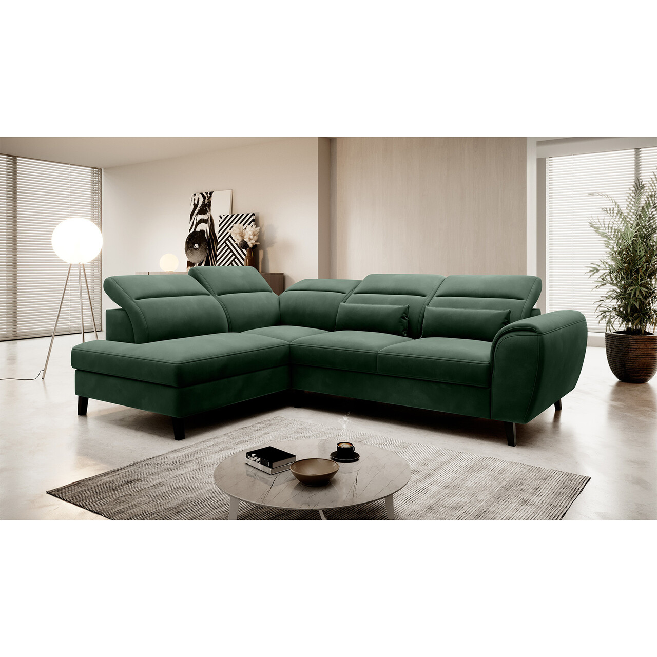 Coltar extensibil stanga 4 locuri ELTAP, LT-35LO, Noble, 255x201x100 cm, lemn/poliester, verde inchis