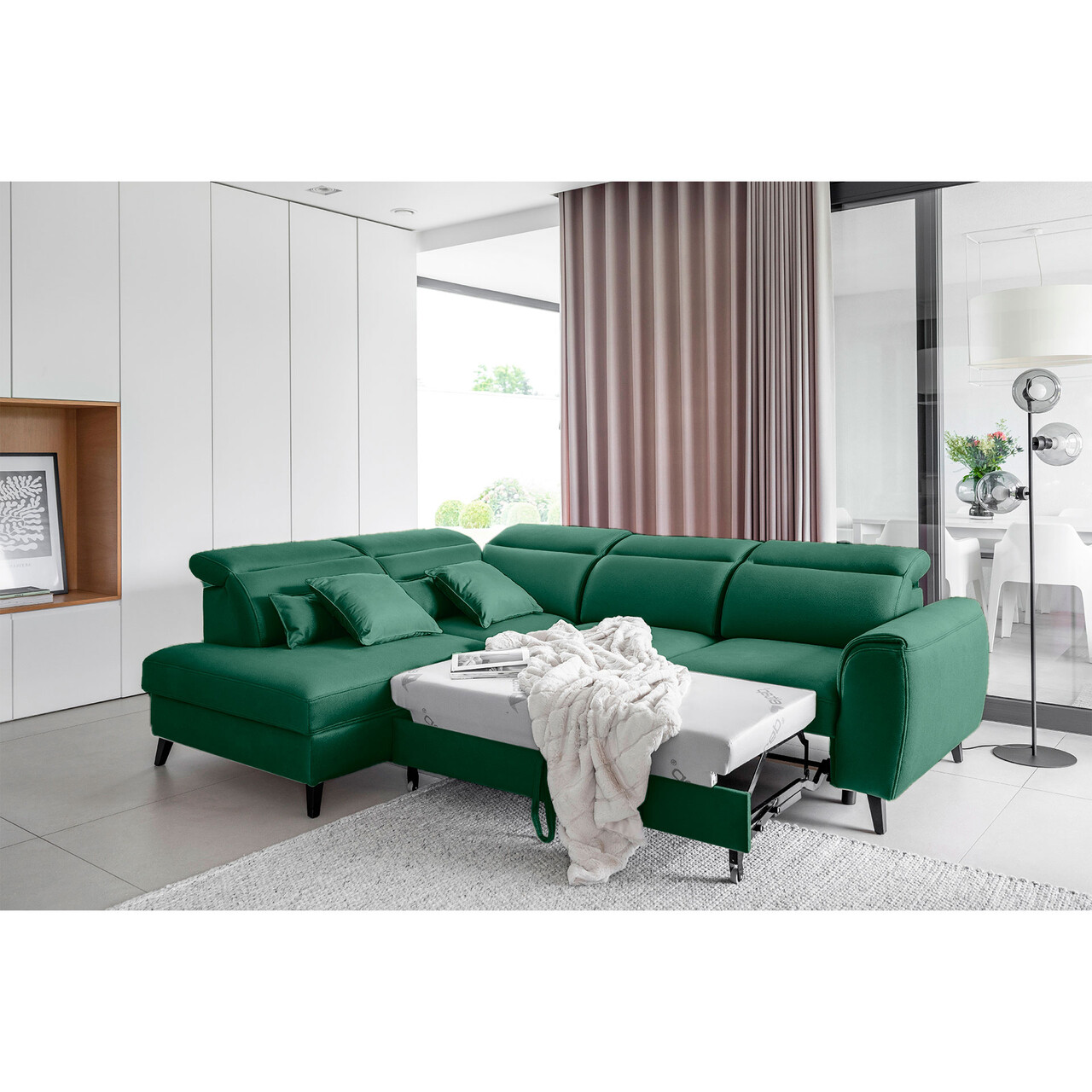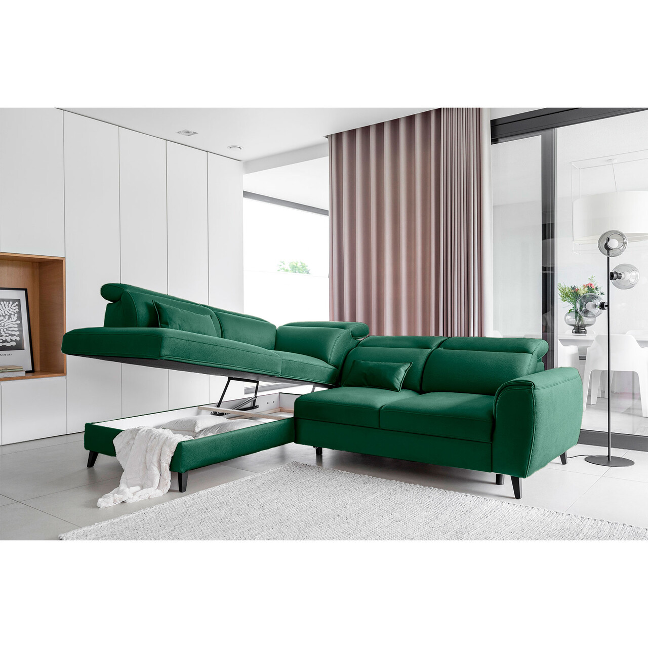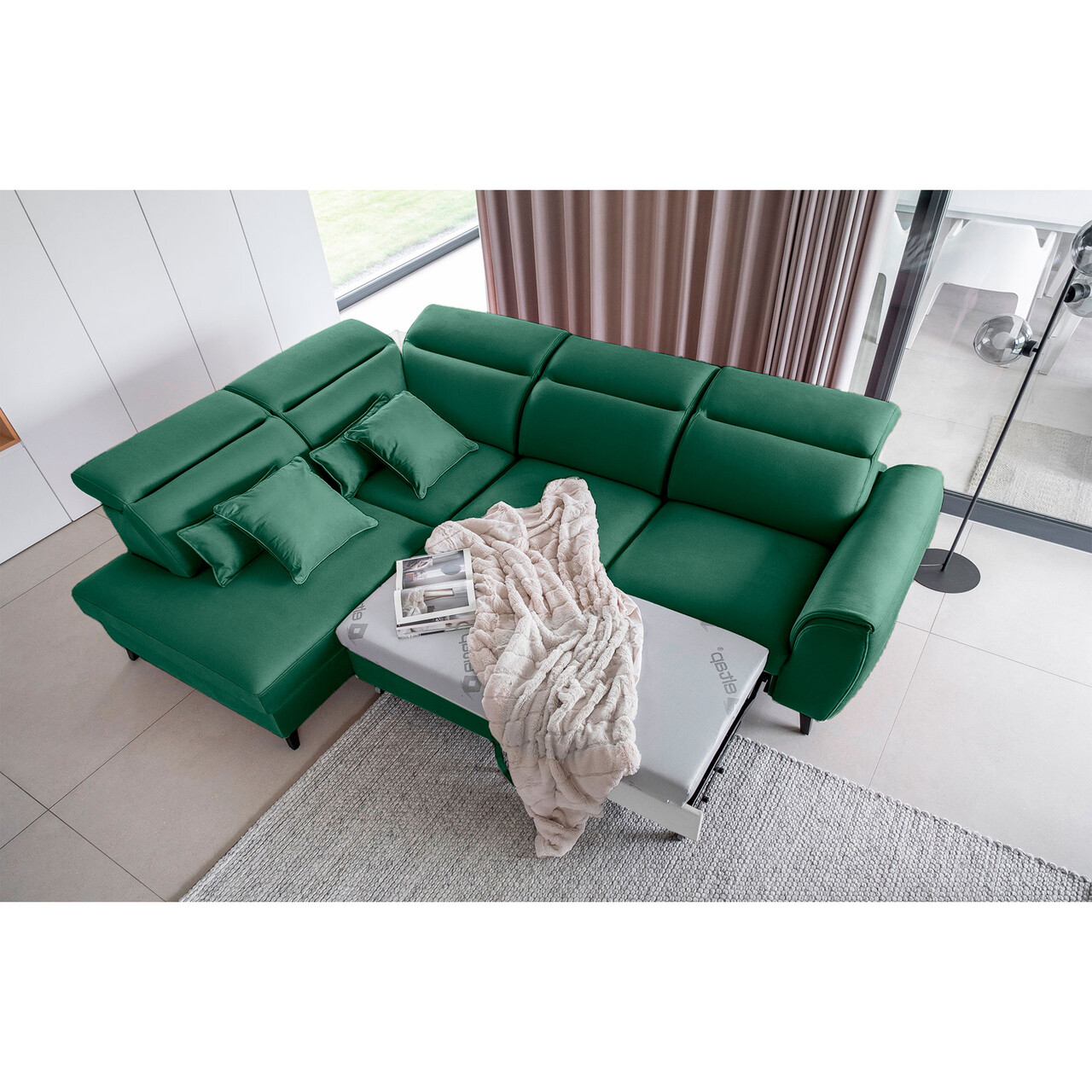 Coltar extensibil stanga 4 locuri ELTAP, LT-35LU, Noble, 255x201x100 cm, lemn/poliester, verde inchis