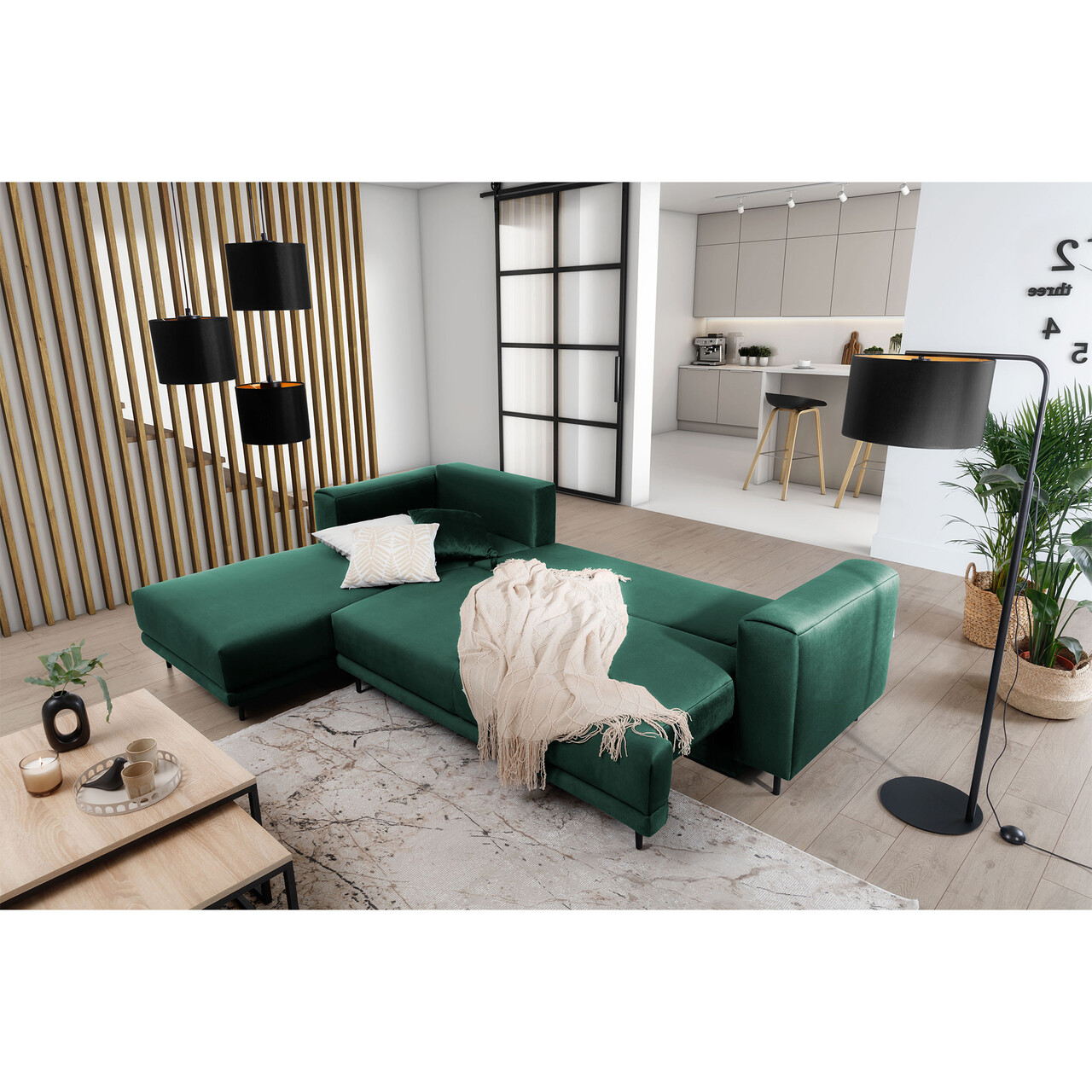 Coltar extensibil stanga 4 locuri ELTAP, LT-35NU, Dalia, 289x190x95 cm, lemn/poliester, verde inchis