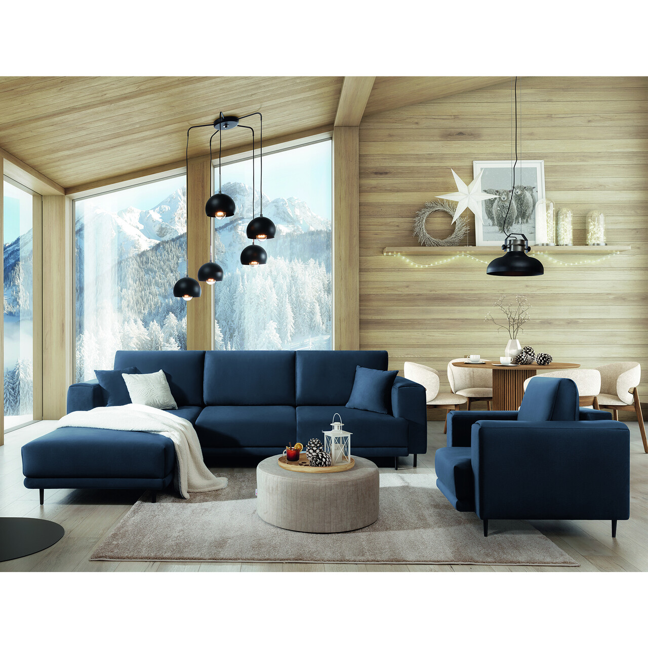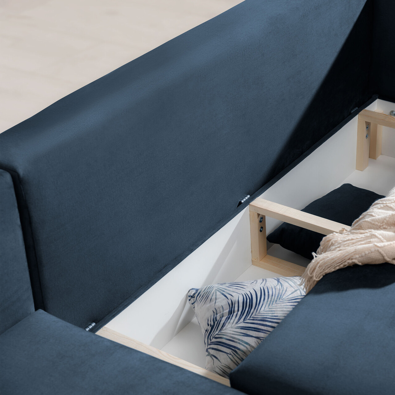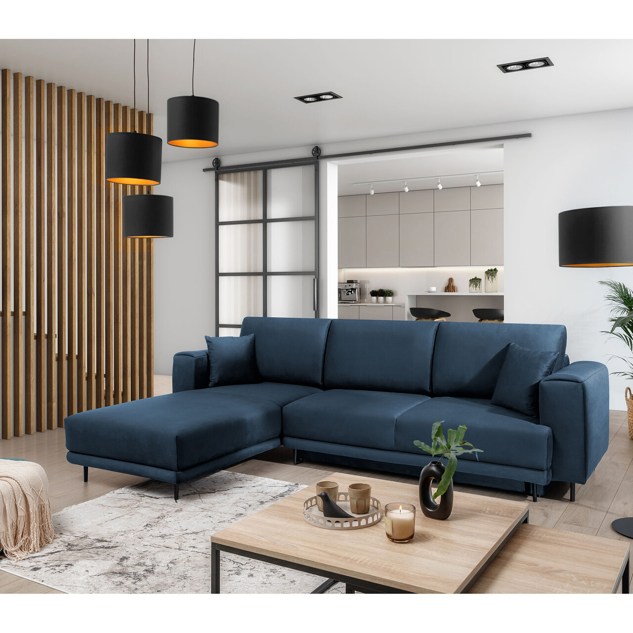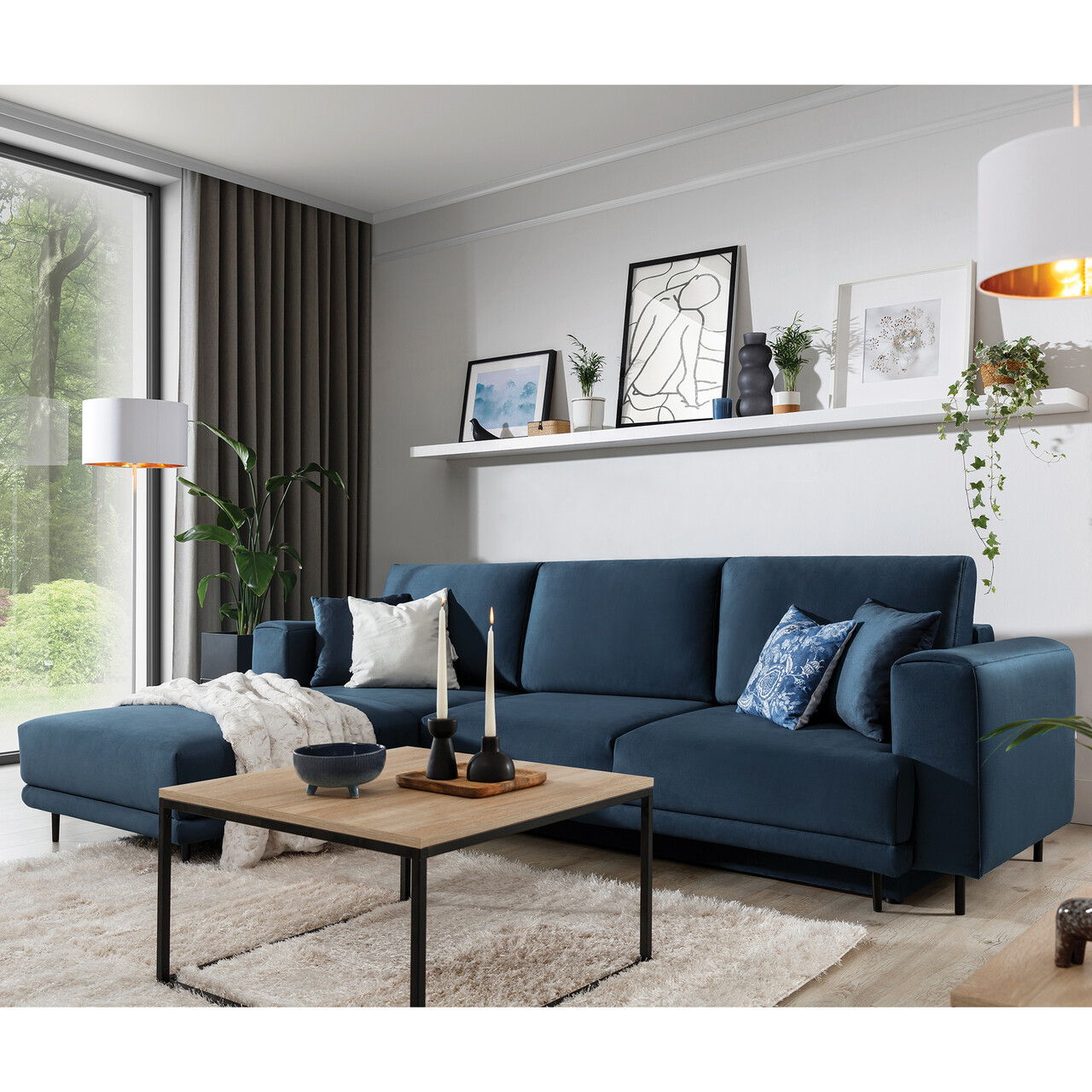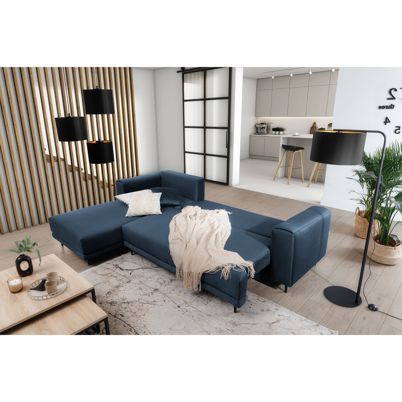 Coltar extensibil stanga 4 locuri ELTAP, LT-40NU, Dalia, 289x190x95 cm, lemn/poliester, albastru inchis