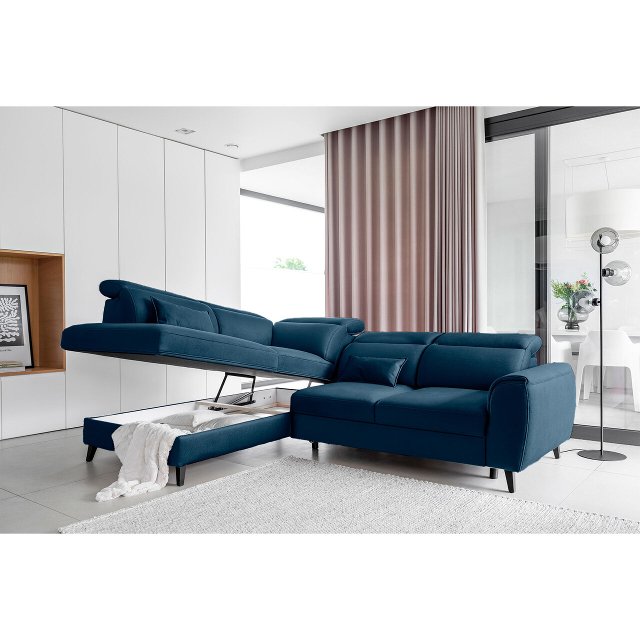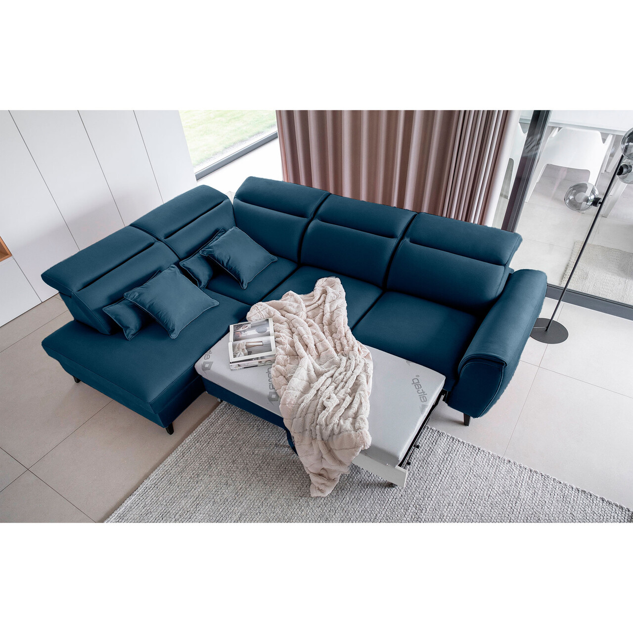 Coltar extensibil stanga 4 locuri ELTAP, LT-40NU, Noble, 255x201x100 cm, lemn/poliester, albastru inchis