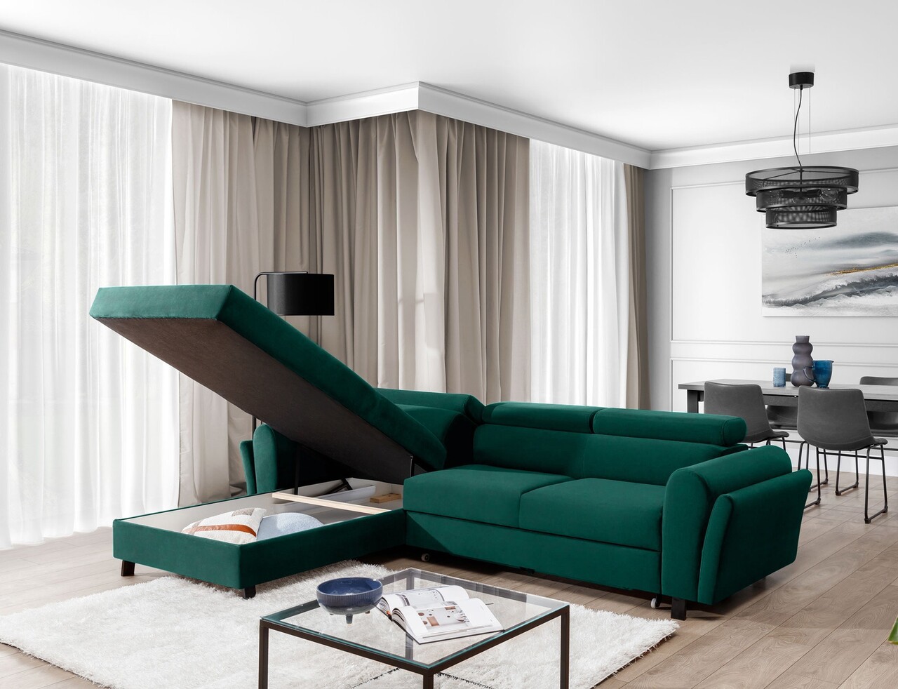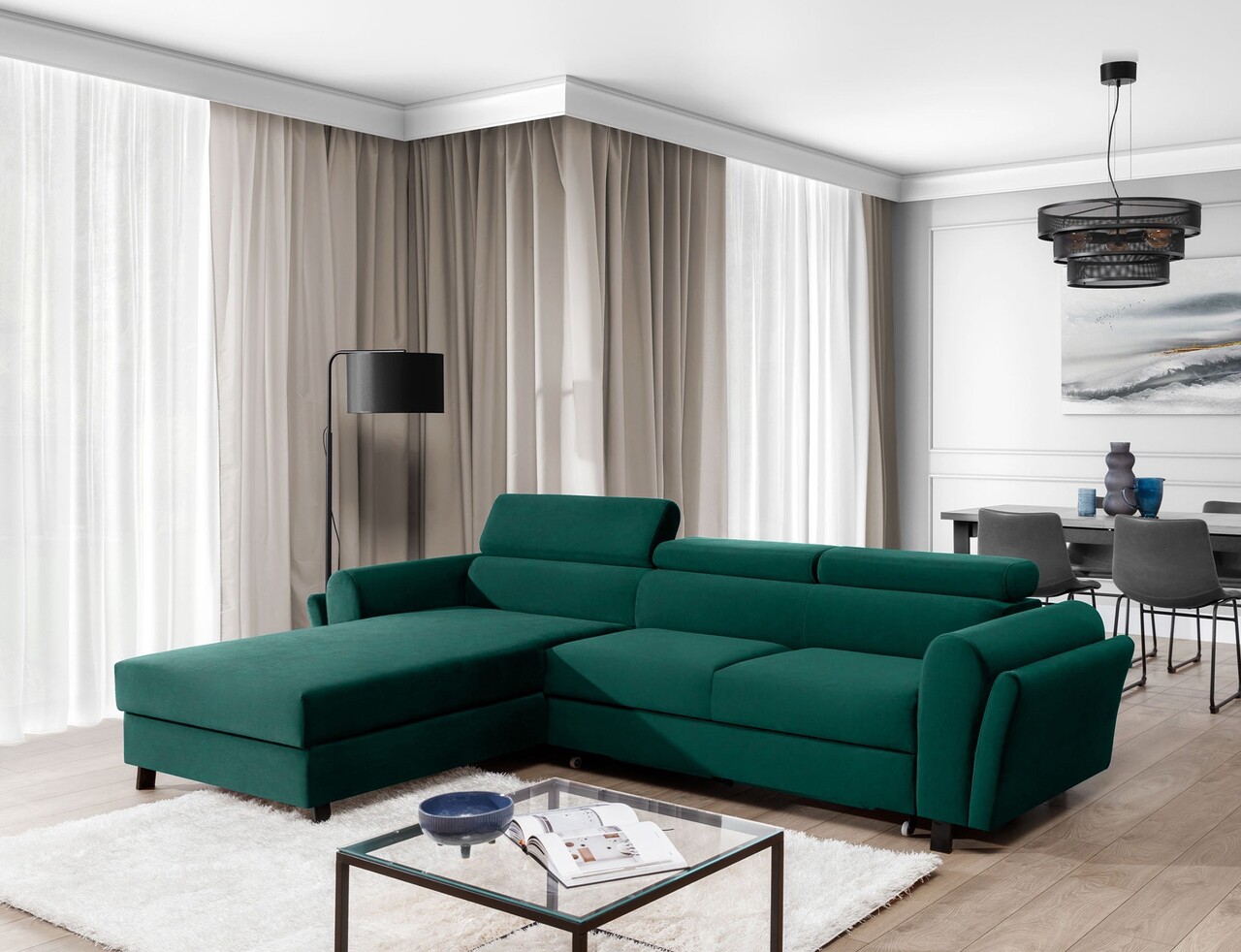 Coltar extensibil stanga 4 locuri ELTAP, Mari-06, Mariall, 288x200x92 cm, lemn/poliester, verde inchis