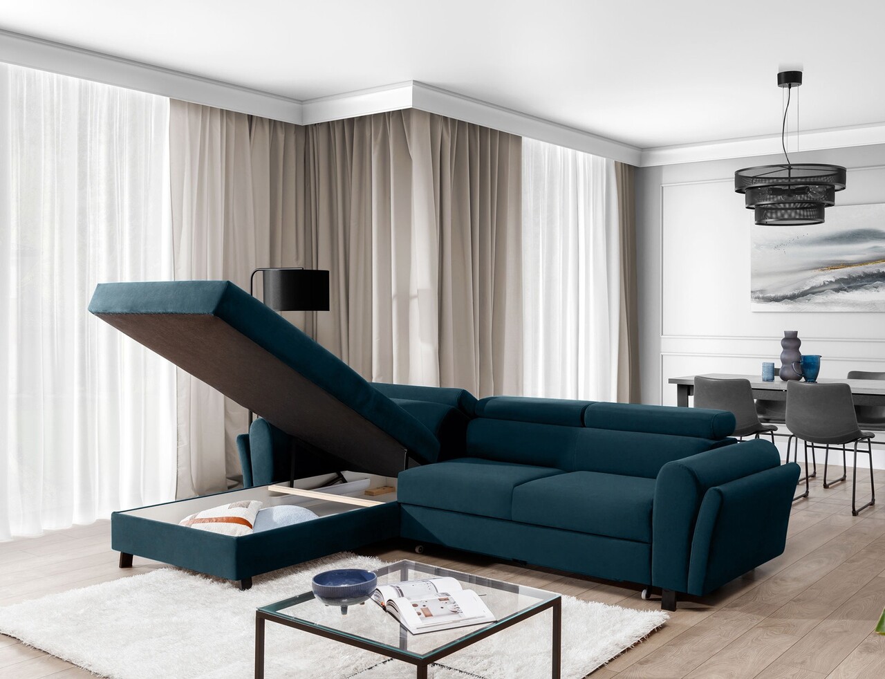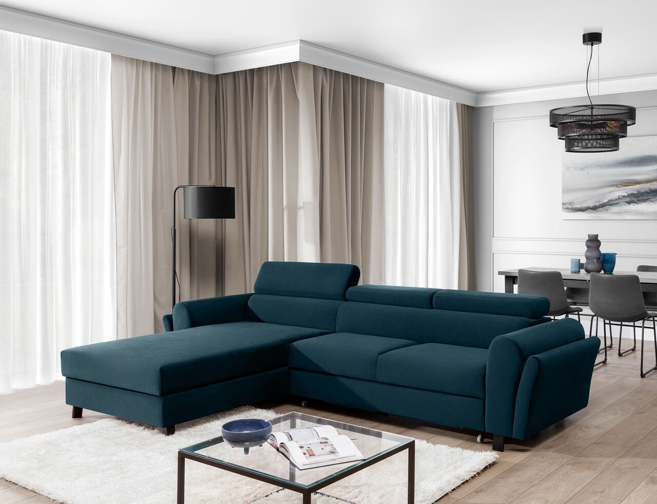 Coltar extensibil stanga 4 locuri ELTAP, Mari-07, Mariall, 288x200x92 cm, lemn/poliester, albastru inchis