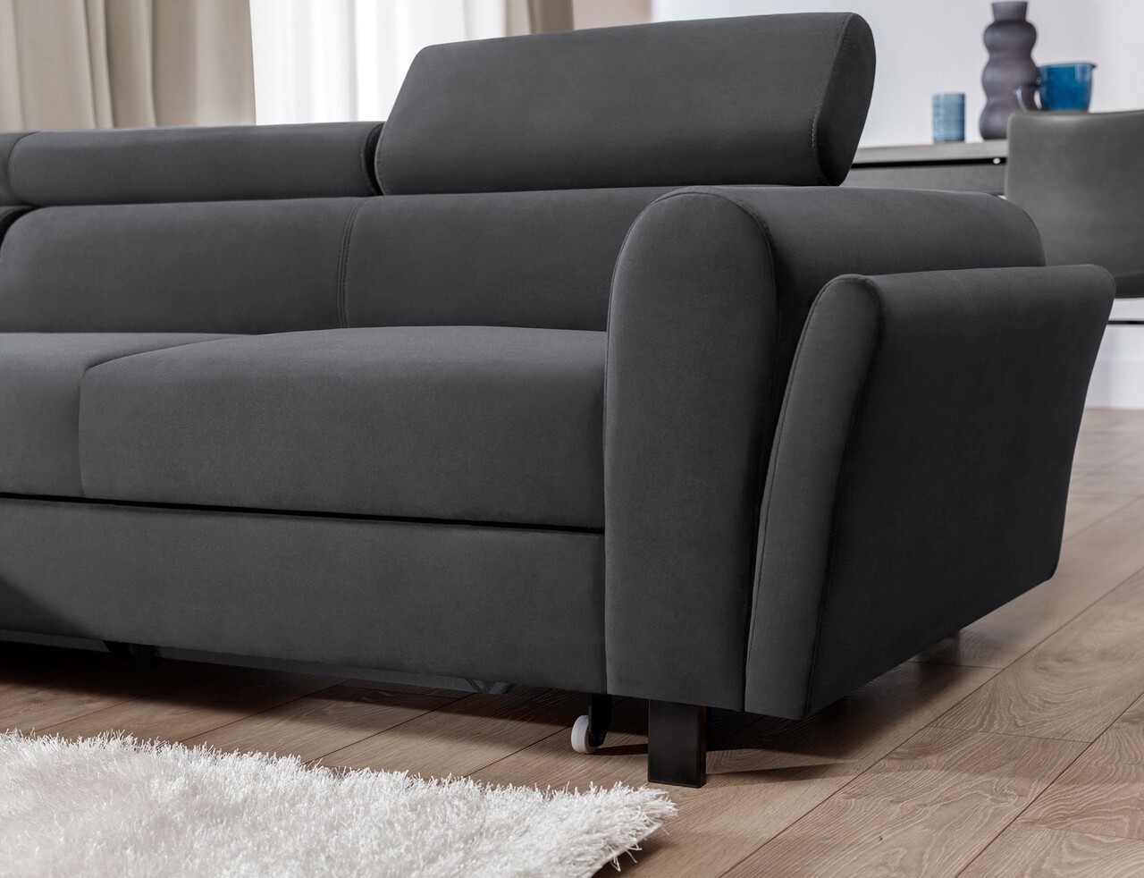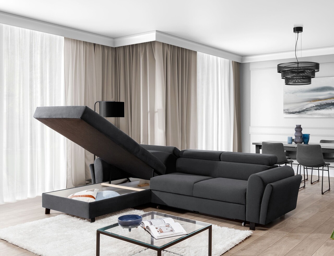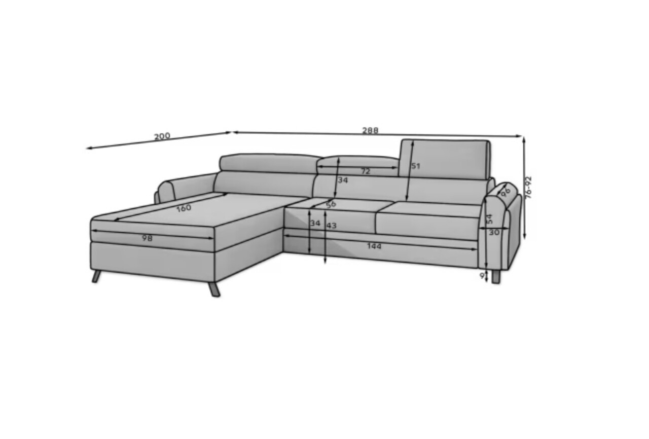 Coltar extensibil stanga 4 locuri ELTAP, Mari-08, Mariall, 288x200x92 cm, lemn/poliester, gri inchis
