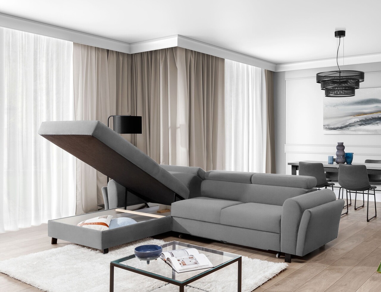 Coltar extensibil stanga 4 locuri ELTAP, Mari-14, Mariall, 288x200x92 cm, lemn/poliester, gri