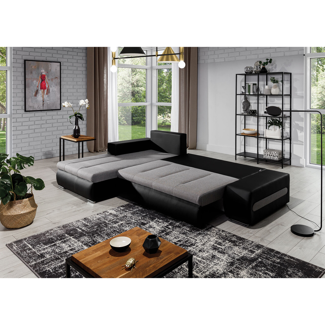 Coltar extensibil stanga 4 locuri ELTAP, Ov48, Ottavio, 275x180x85 cm, lemn/poliester, albastru/gri inchis