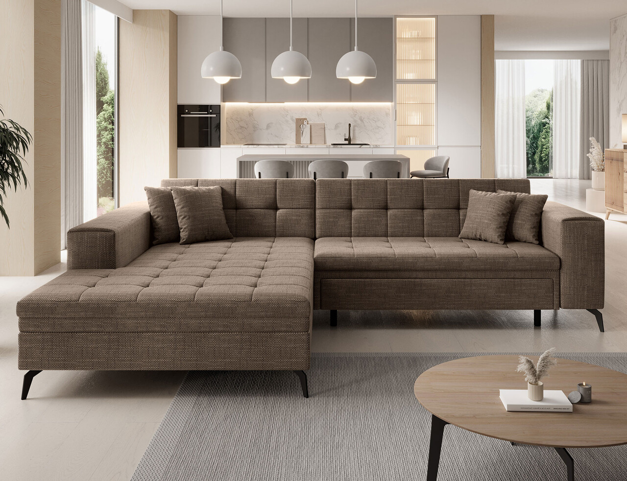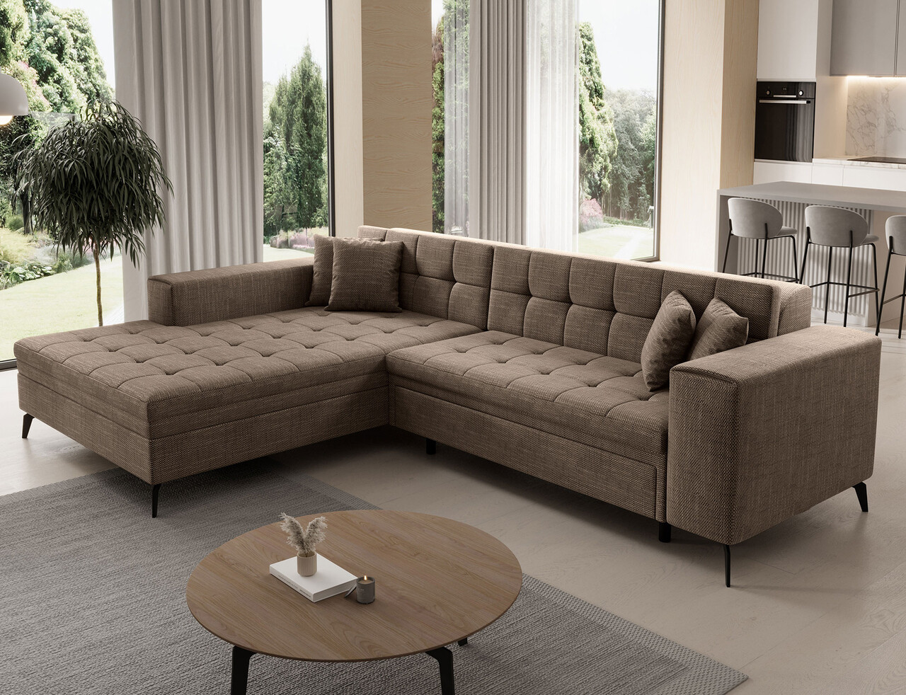 Coltar extensibil stanga 4 locuri ELTAP, Sol-02, Solange, 292x196x84 cm, lemn/poliester, bej inchis