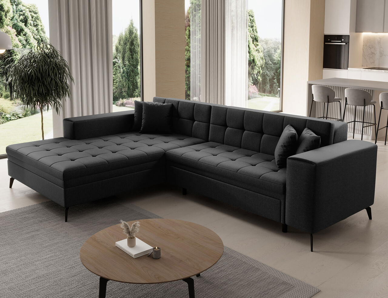 Coltar extensibil stanga 4 locuri ELTAP, Sol-03, Solange, 292x196x84 cm, lemn/poliester, negru