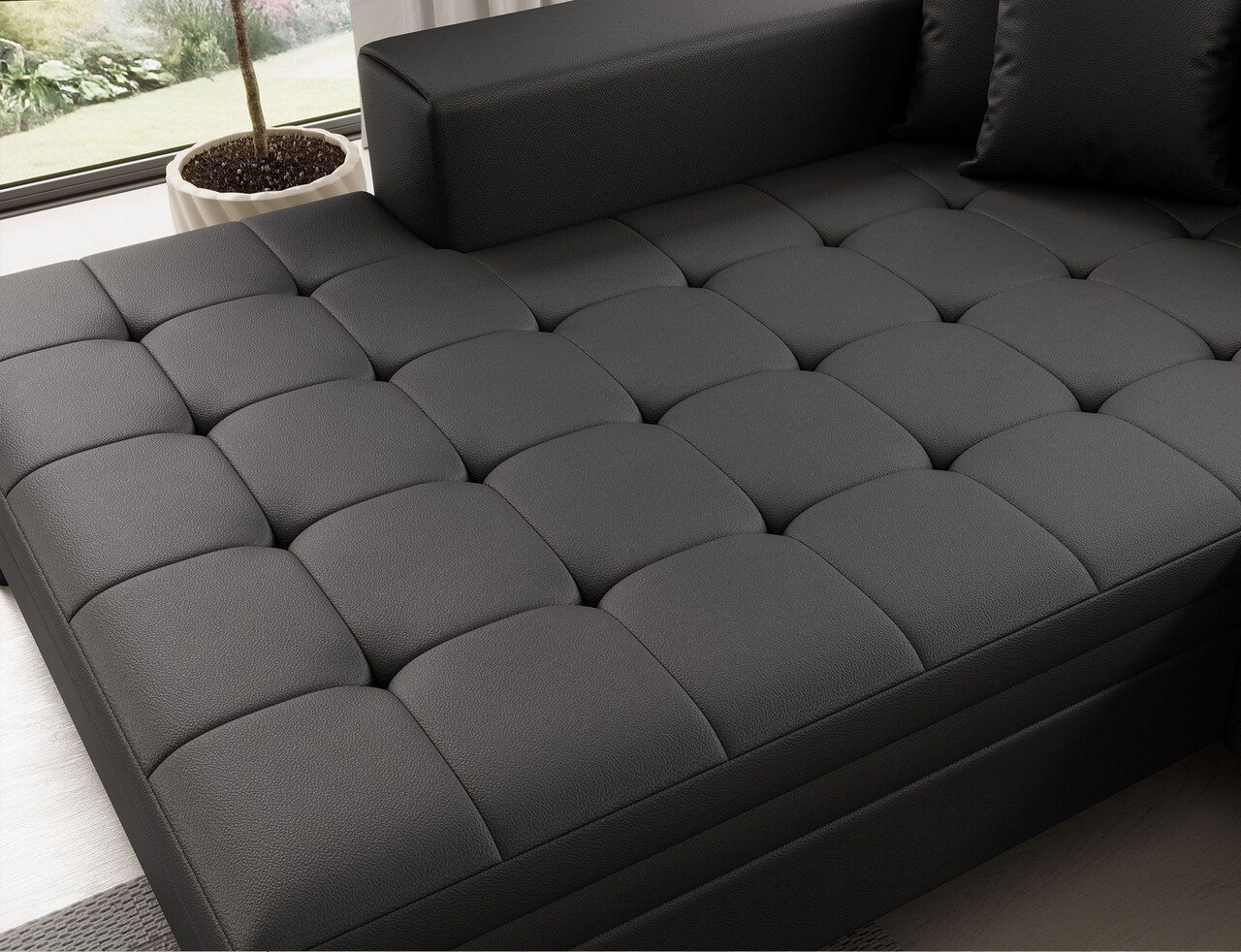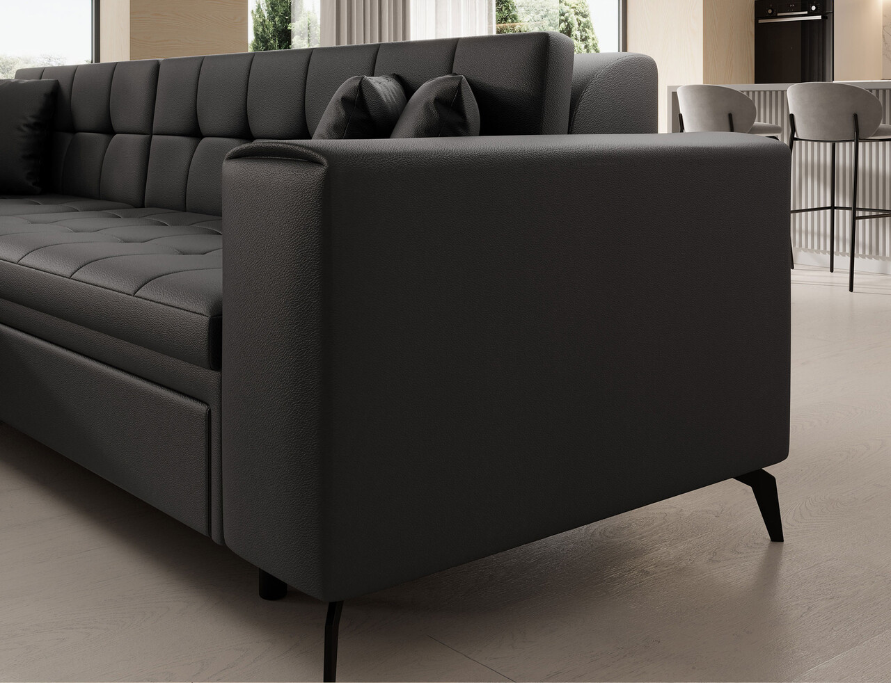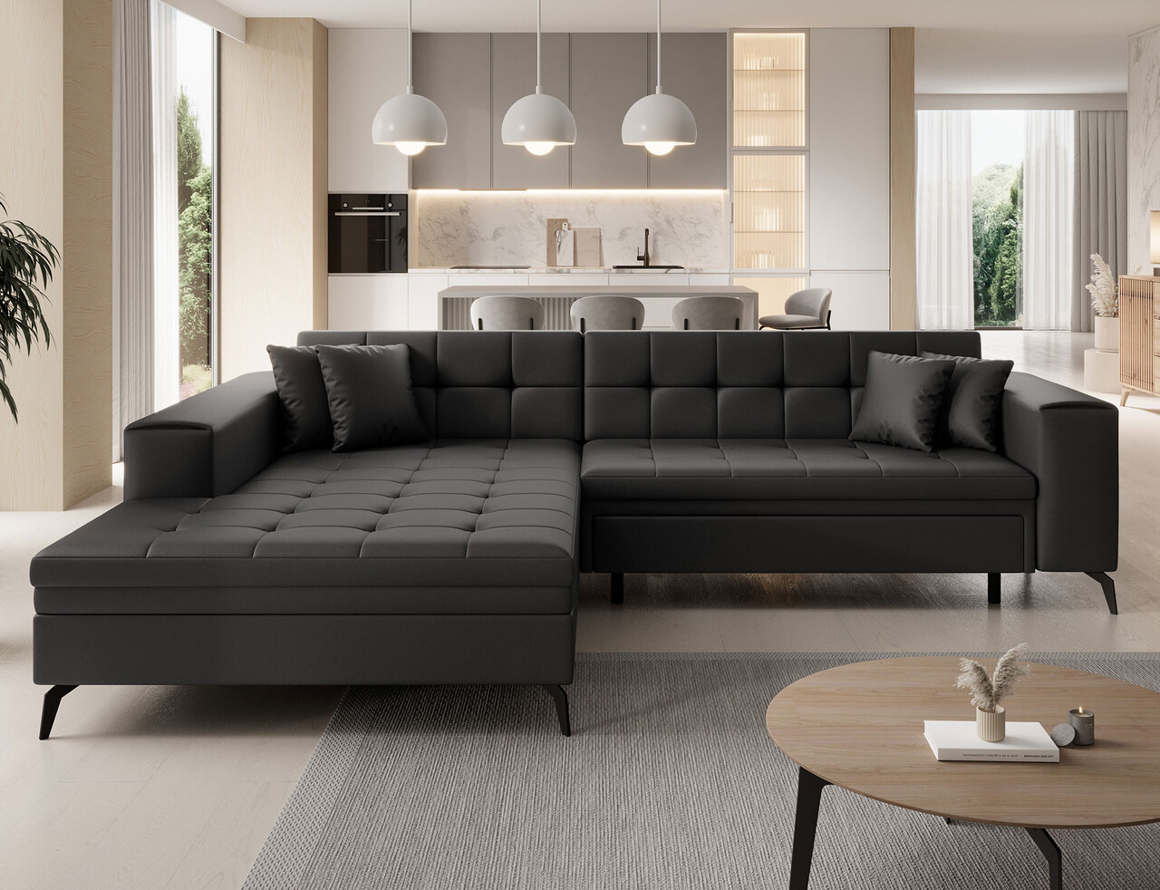 Coltar extensibil stanga 4 locuri ELTAP, Sol-05, Solange, 292x196x84 cm, lemn/poliester, negru