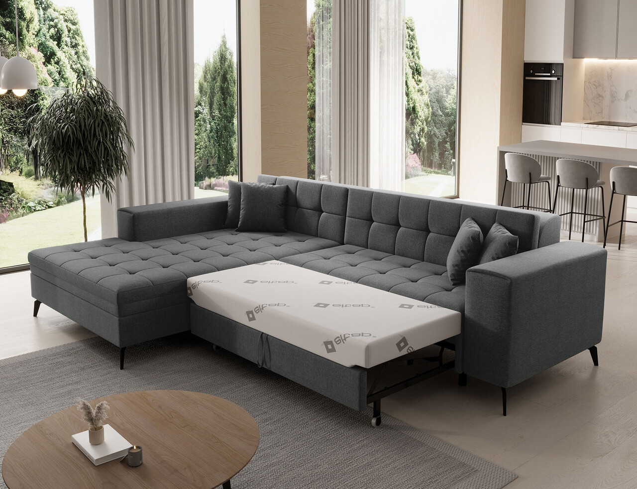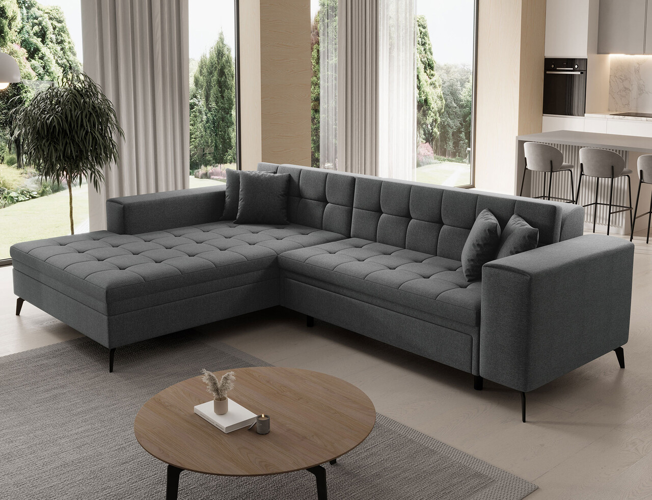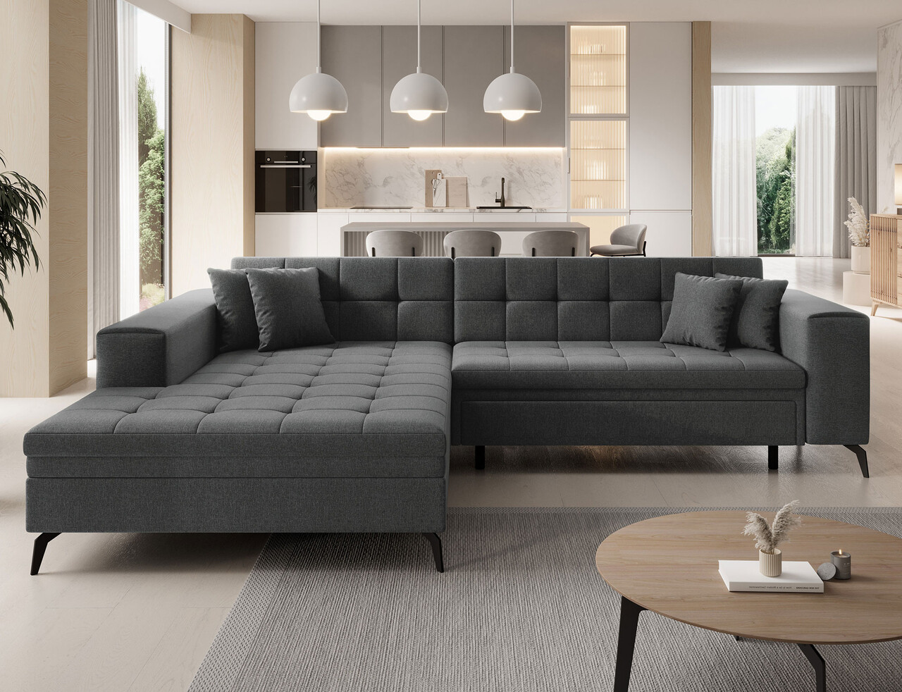 Coltar extensibil stanga 4 locuri ELTAP, Sol-08, Solange, 292x196x84 cm, lemn/poliester, gri