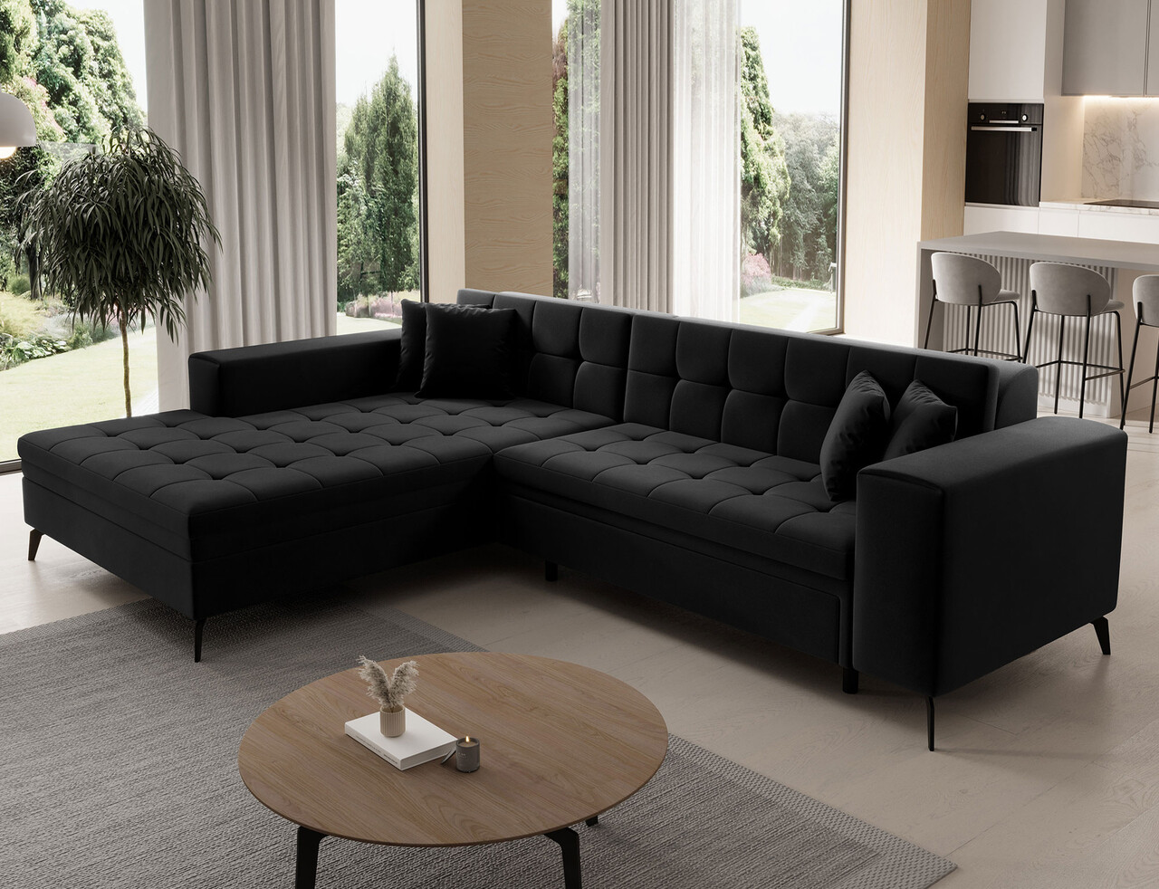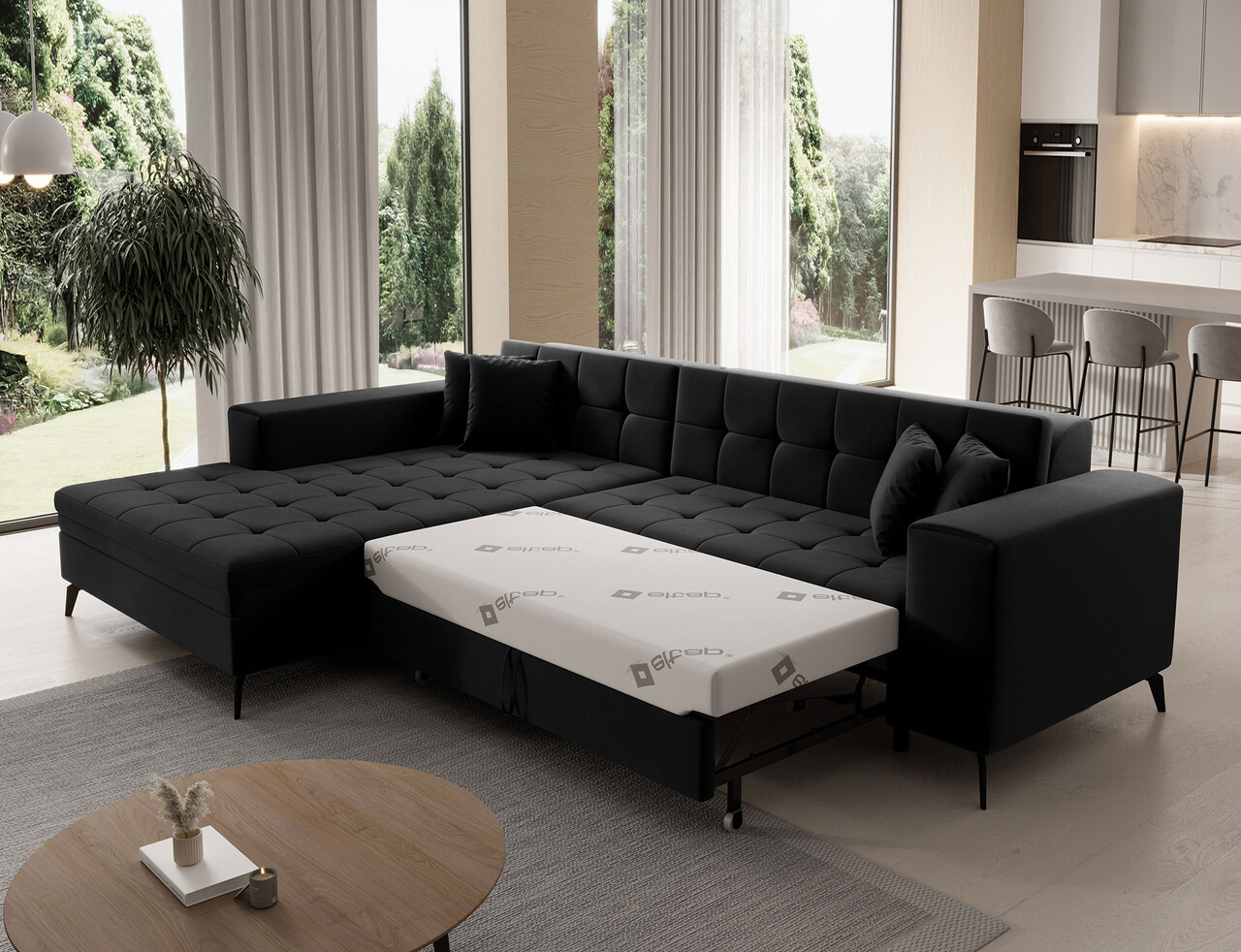 Coltar extensibil stanga 4 locuri ELTAP, Sol-17, Solange, 292x196x84 cm, lemn/poliester, negru