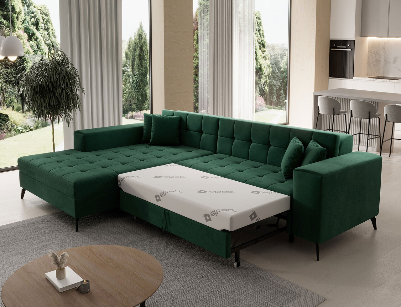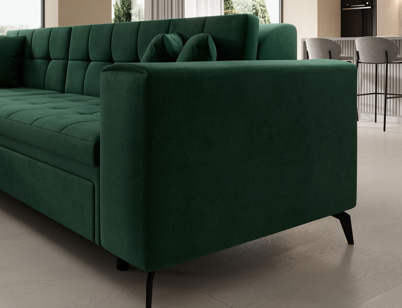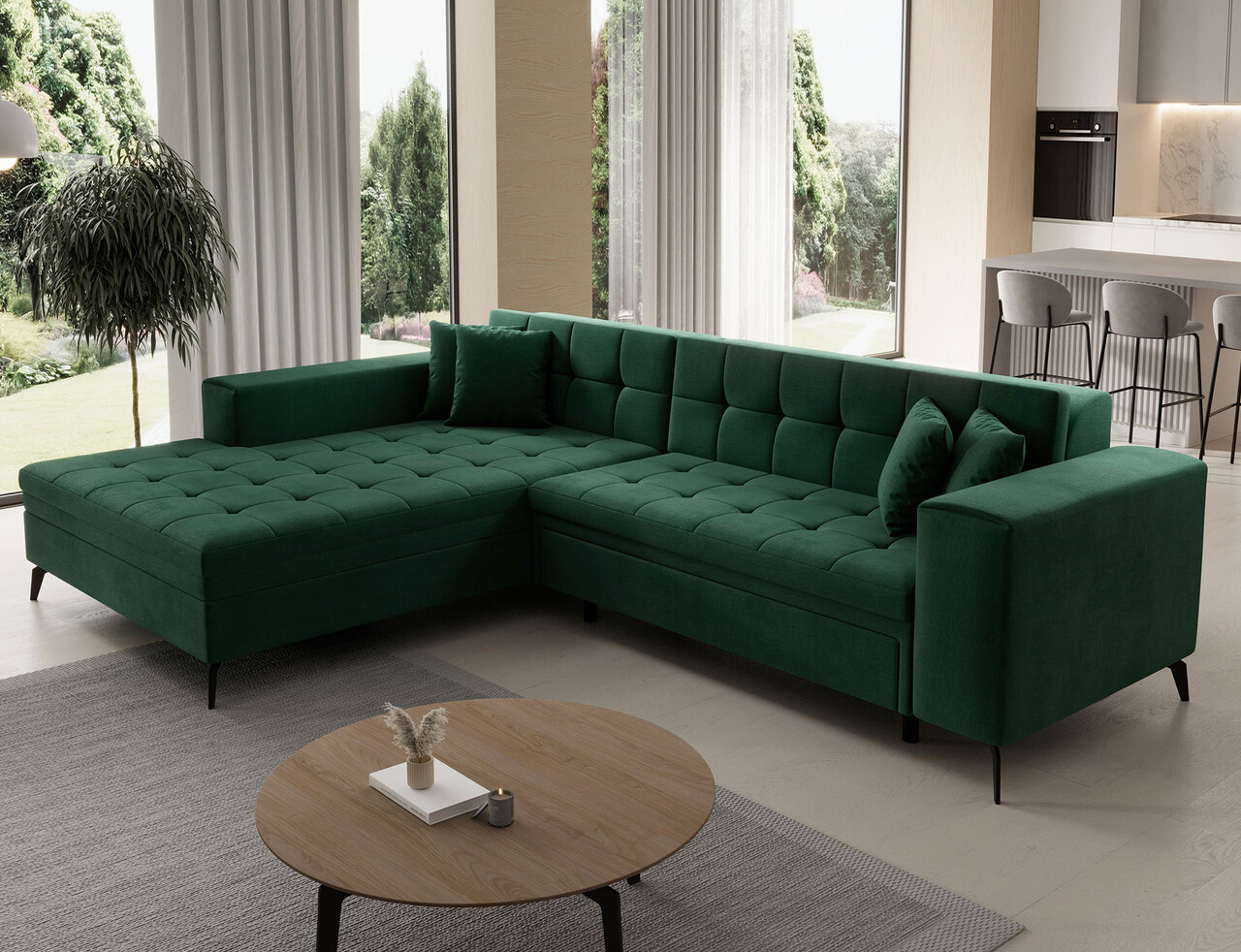 Coltar extensibil stanga 4 locuri ELTAP, Sol-18, Solange, 292x196x84 cm, lemn/poliester, verde inchis
