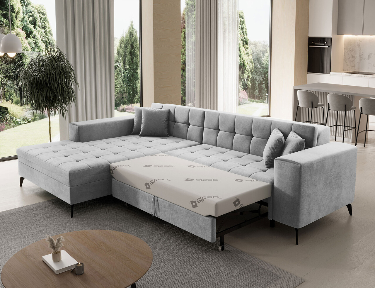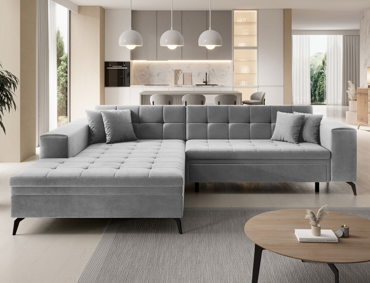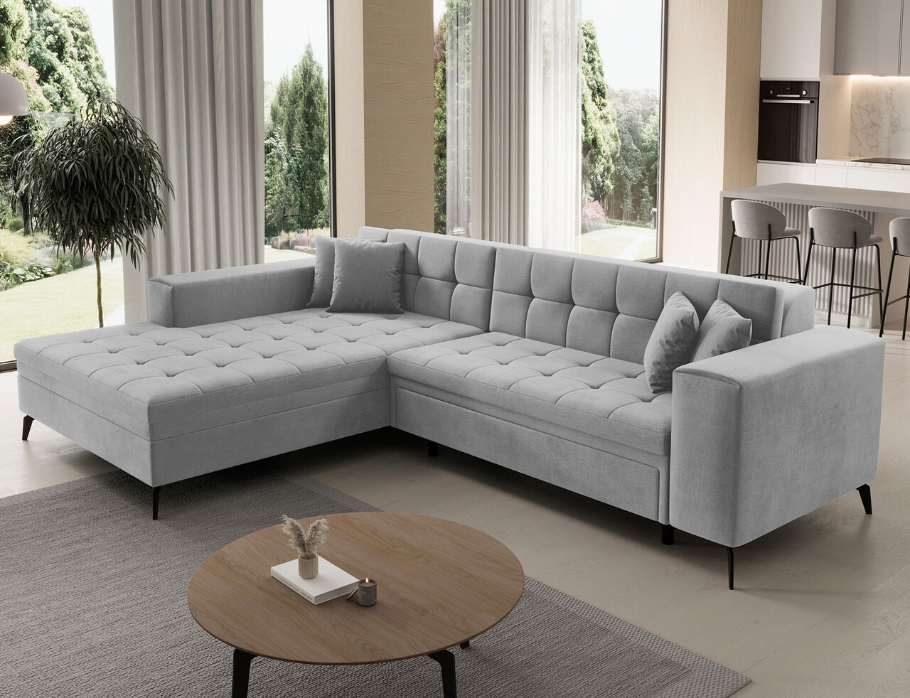 Coltar extensibil stanga 4 locuri ELTAP, Sol-20, Solange, 292x196x84 cm, lemn/poliester, gri deschis