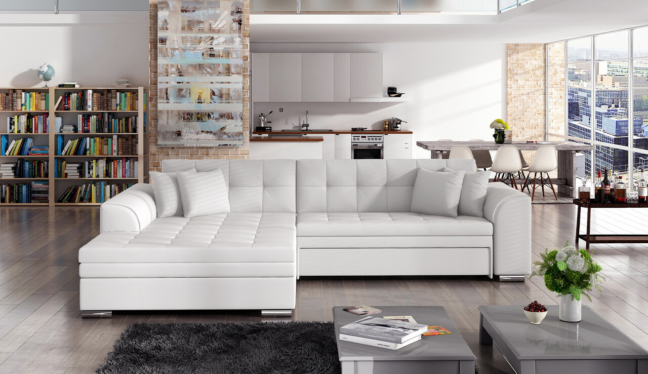 Coltar extensibil stanga 4 locuri, ELTAP, Sorento, 296x194x78 cm, lemn/poliester, alb