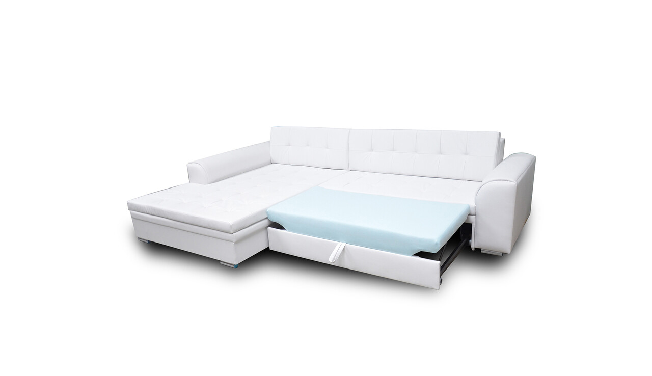 Datorita mecanismului de extensie tip delfin, coltarul Sorento se transforma rapid intr-un pat spatios, oferind o suprafata de dormit confortabila pentru un somn odihnitor. Confortul maxim este garantat de combinatia dintre arcurile ondulate si spuma T30 care asigura un suport optim si rezistenta in timp.